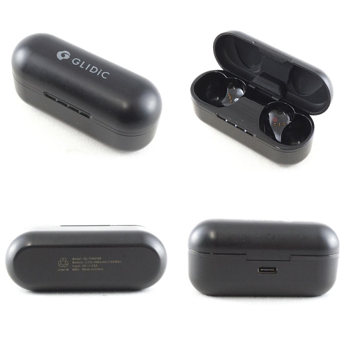 GLIDiC TW-6100 完全ワイヤレスイヤホン USED美品 GL-TW6100 ノイズキャンセリング ANC 外音取込 マイク 防水 IPX5 ブラック 完動品 V1693