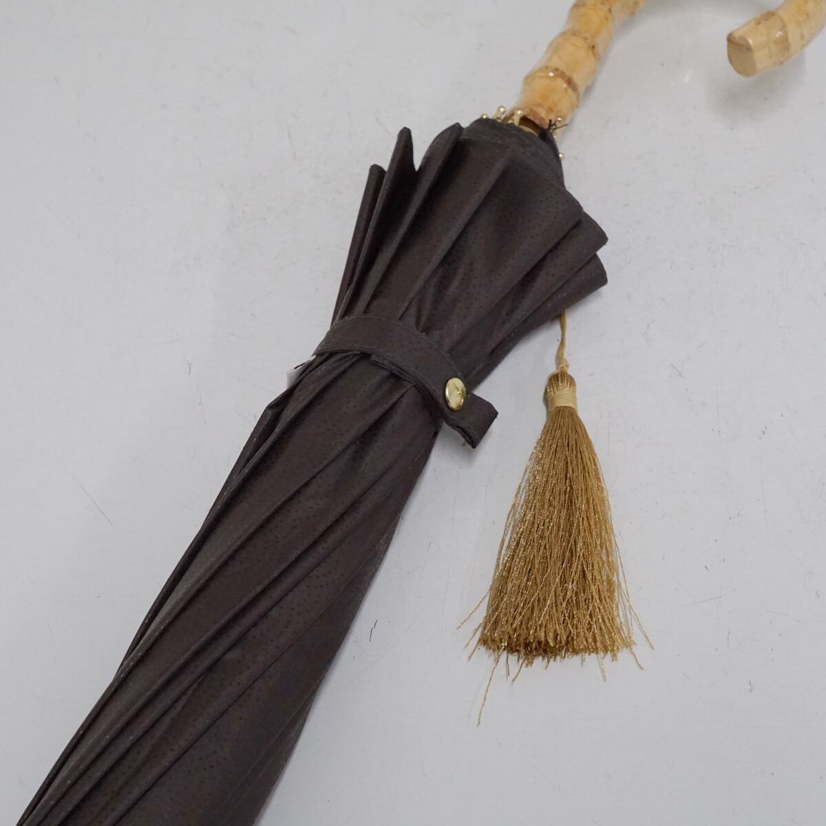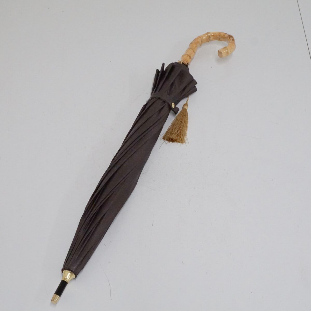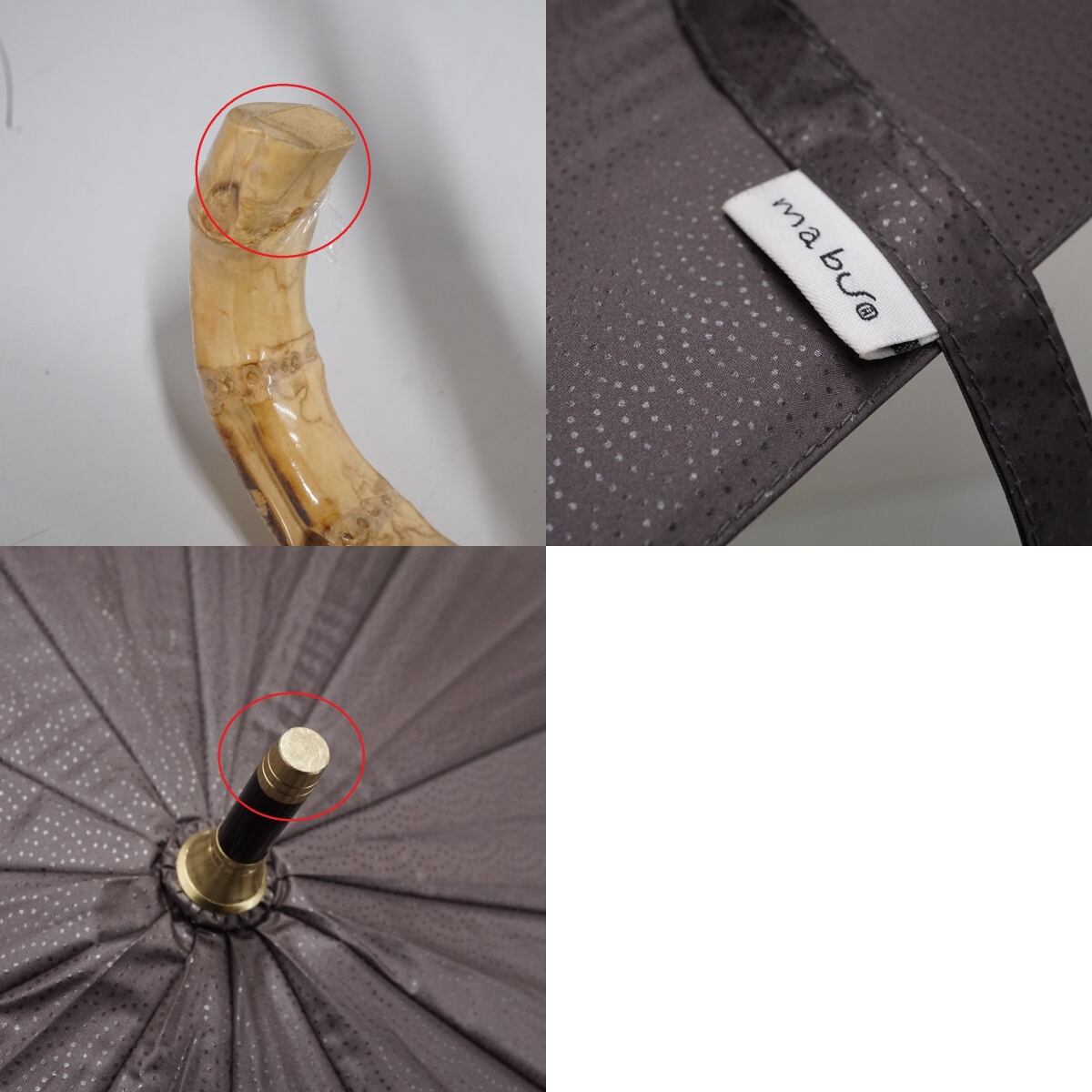晴雨兼用日傘 mabu マブ USED美品 12本骨 遮光 ショート 江戸 栗皮 江戸小紋 バンブーハンドル 50cm A3080