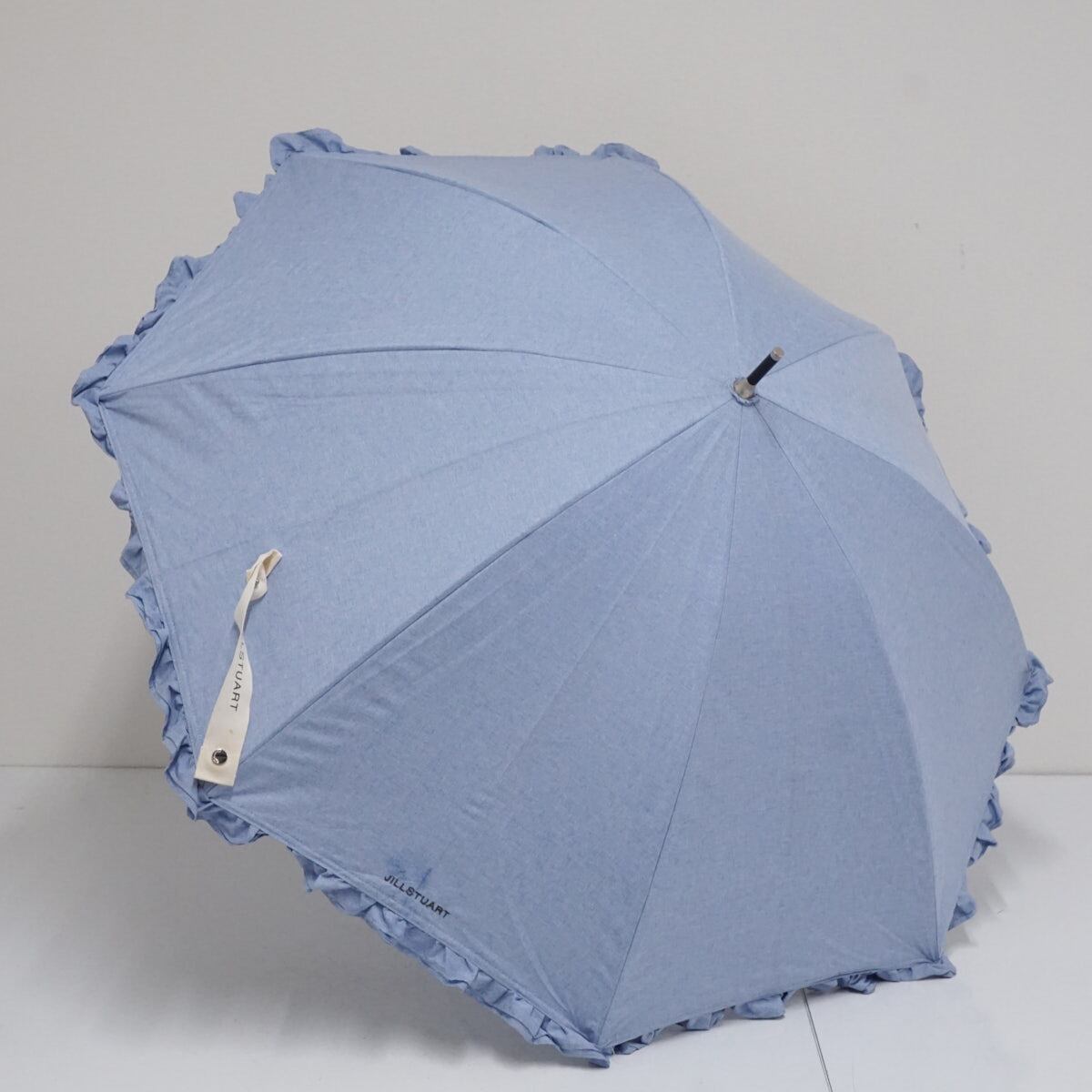 晴雨兼用日傘 JILL STUART ジルスチュアート USED美品 ボリュームフリル ロゴ UV 遮光 遮熱 グラス骨 47cm S3081