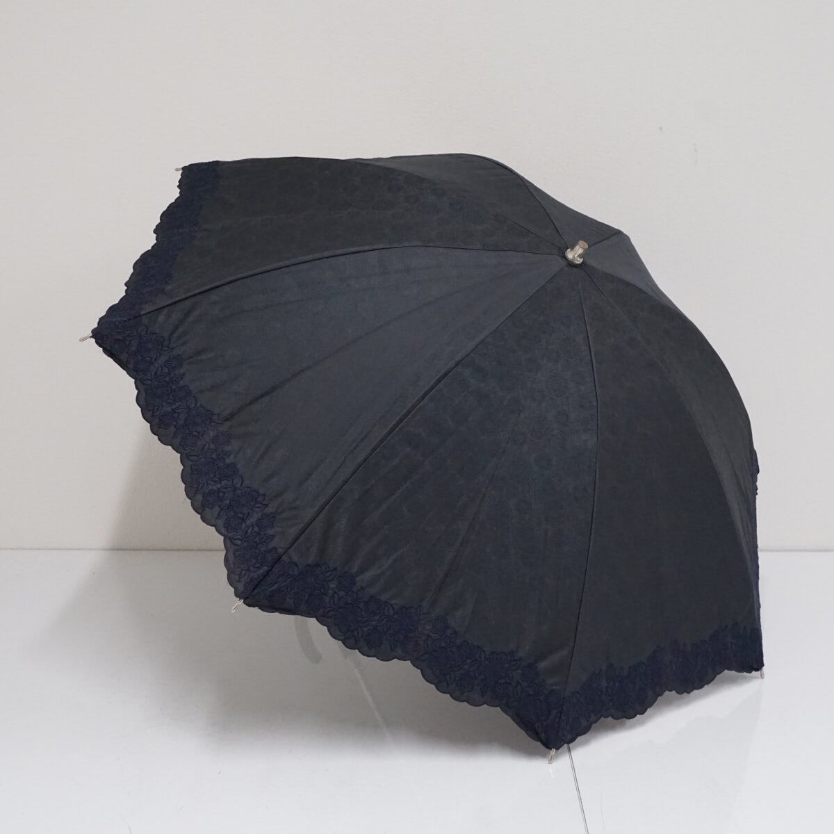晴雨兼用日傘 NINA RICCI ニナリッチ USED品 刺繍 ブラック フラワー UV 遮光 遮熱 グラス骨 47cm A3082