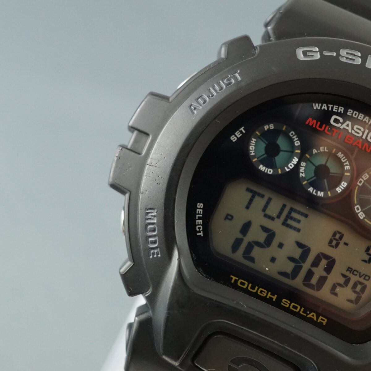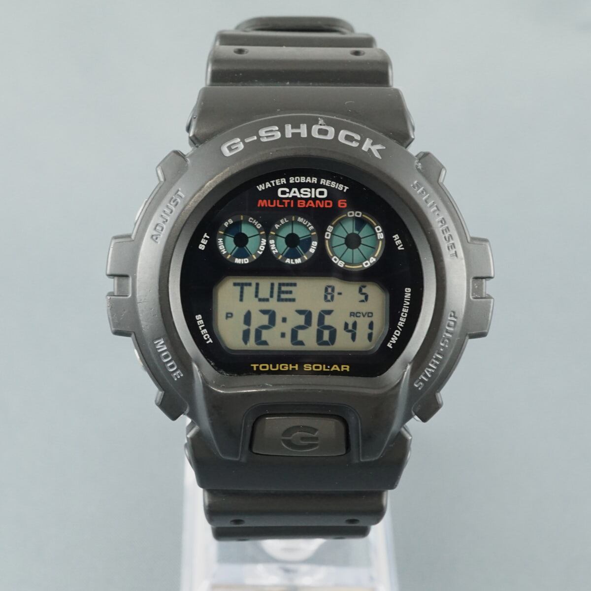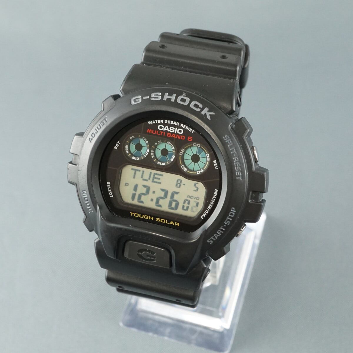 人気のDW-6900をベースに、世界6局の標準電波を受信するマルチバンド6とタフソーラーを搭載したモデル。