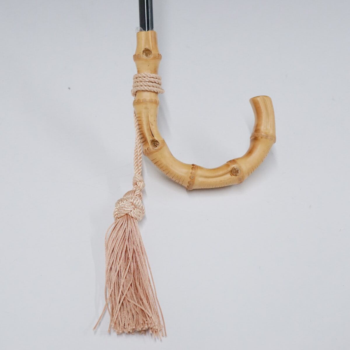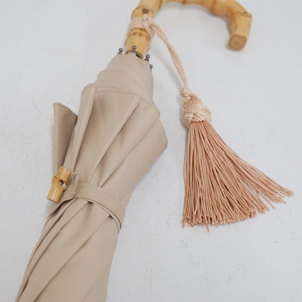 ベージュの生地とバンブーハンドル、ピンクベージュのタッセルがシンプルかつ、高級感を感じる仕上がりです。