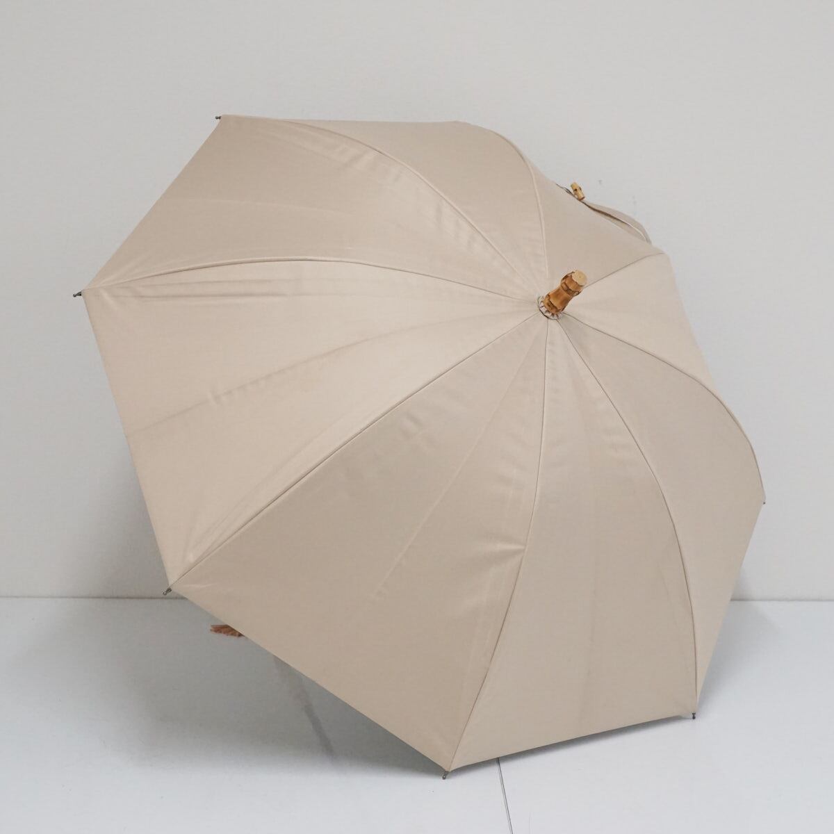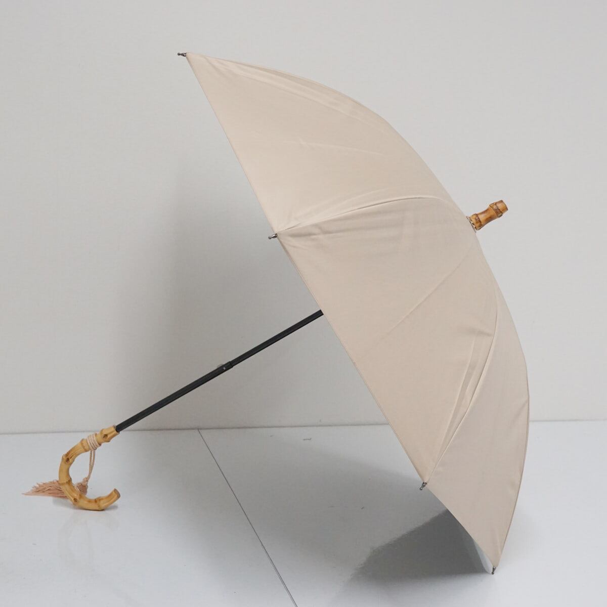 晴雨兼用日傘 utatane ウタタネ USED品 一級遮光 ベージュ シンプル バンブーハンドル タッセル付 グラス骨 UV 47cm A3087
