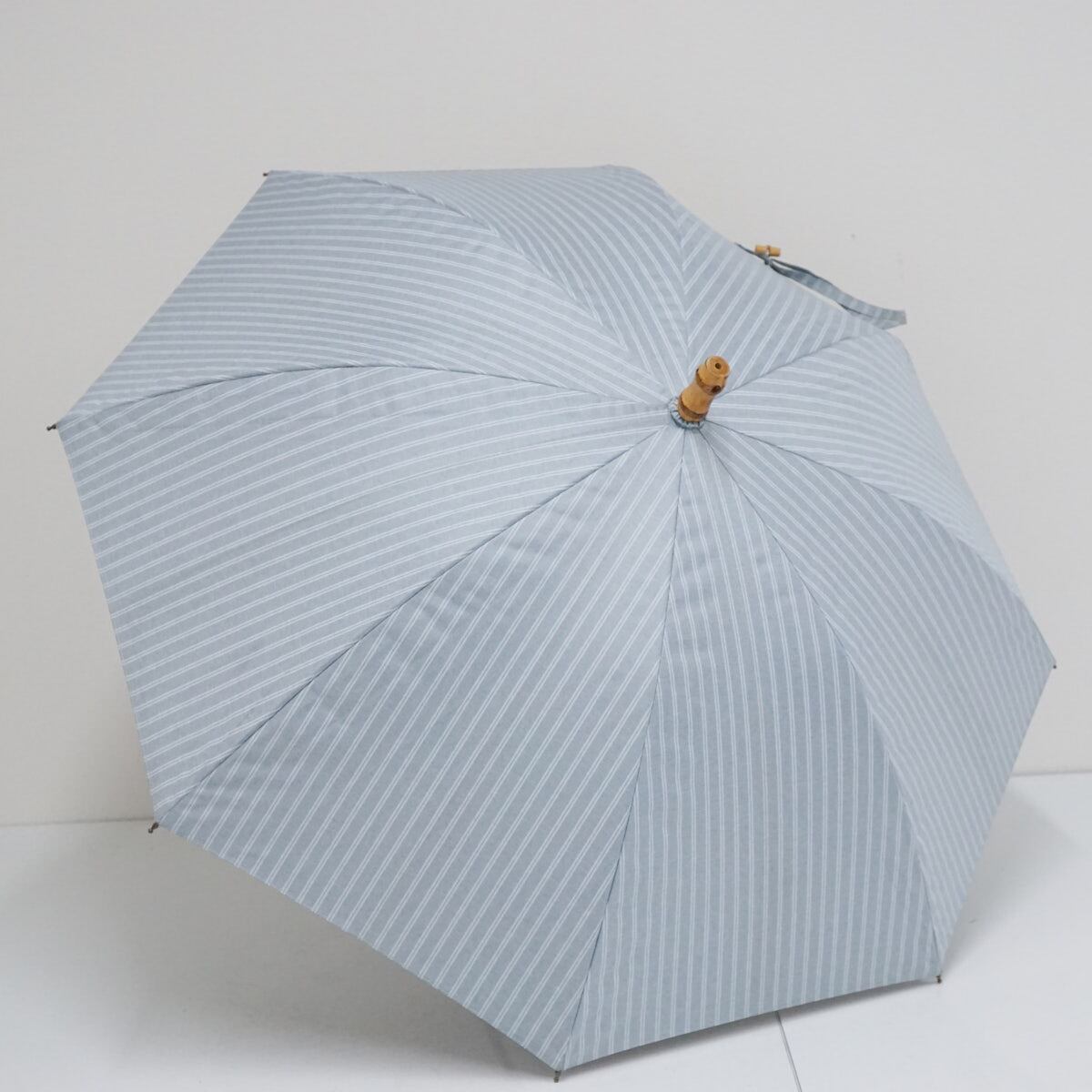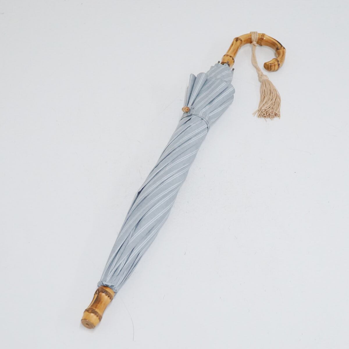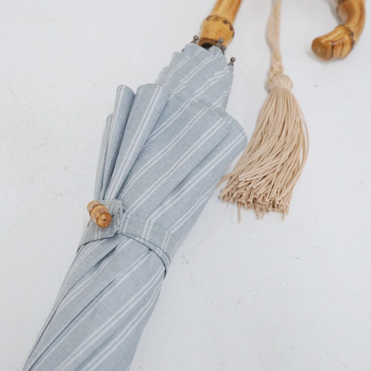 ブルーストライプの生地とバンブーハンドル、ベージュのタッセルがシンプルかつ、高級感を感じる仕上がりです。