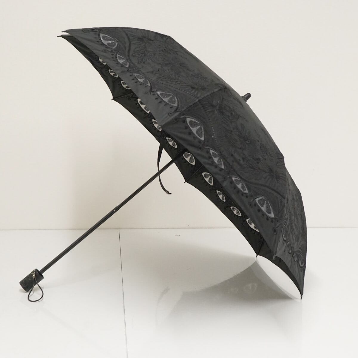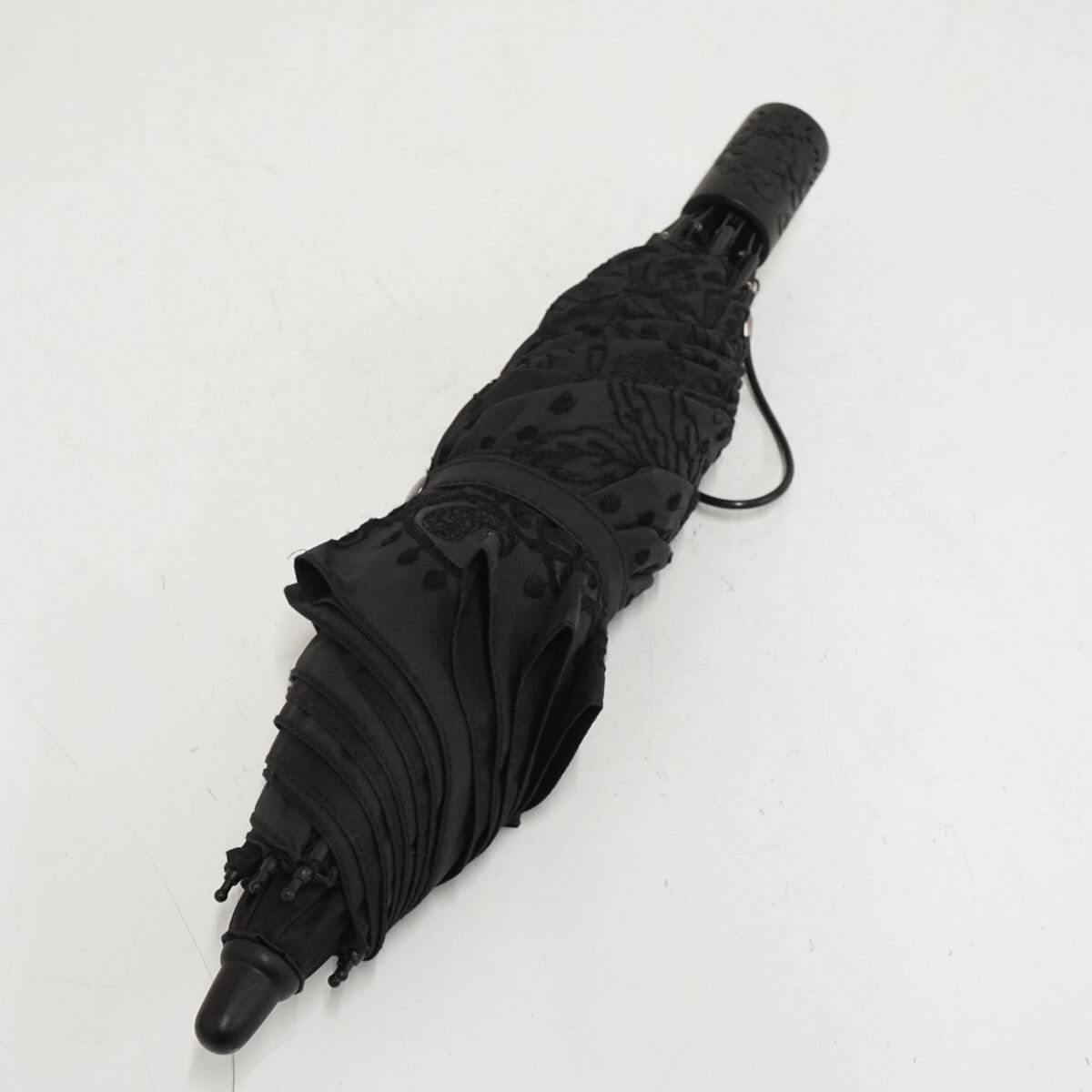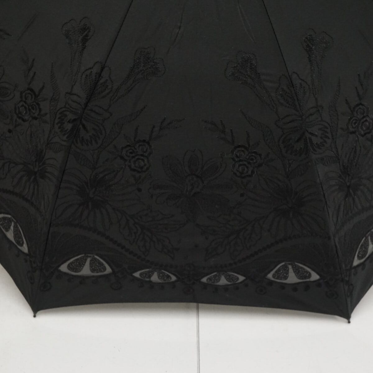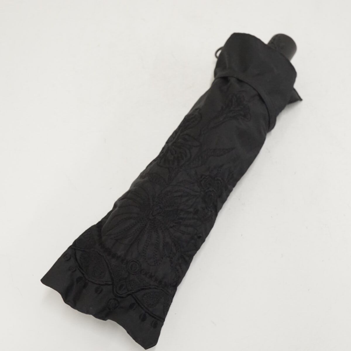 折りたたみ日傘 SHIBATA 柴田(株) USED美品 花 フラワー 刺繍 木製手元 ブラック 日本製 50cm FS9282