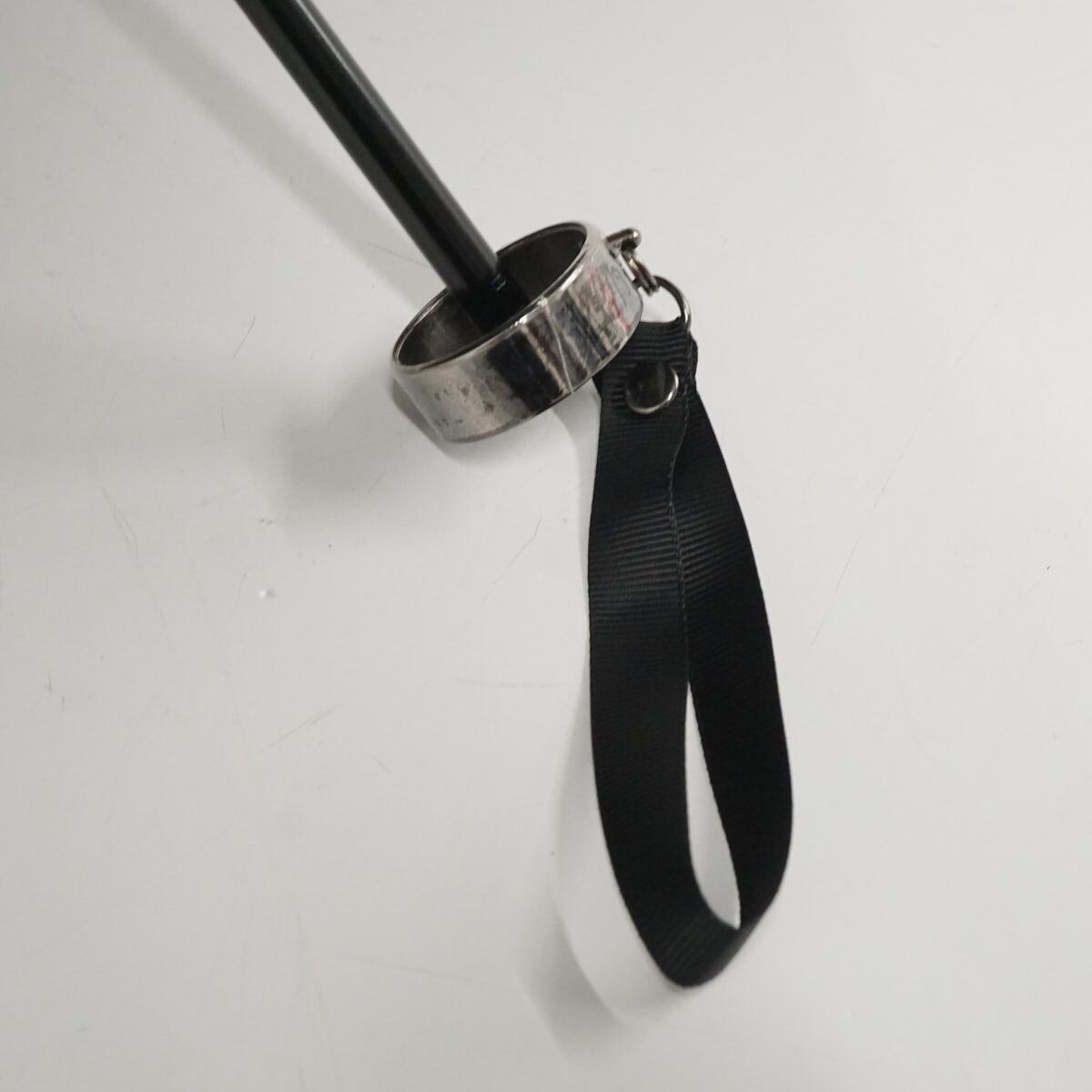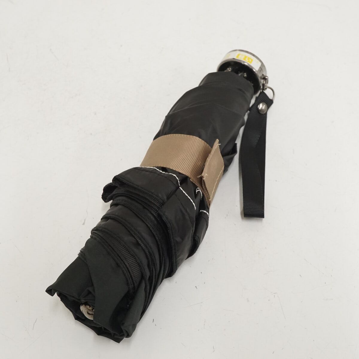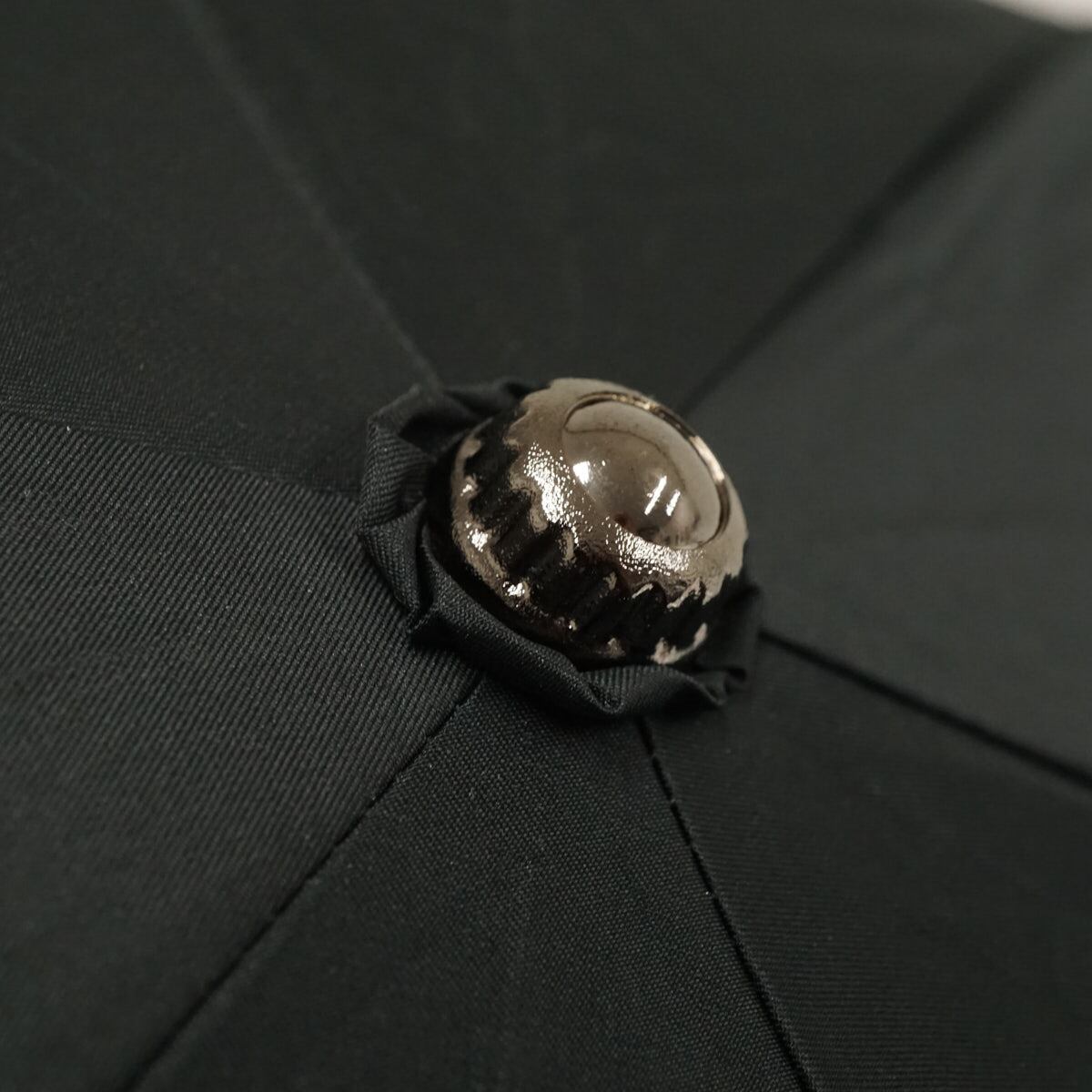 ブラックの生地にホワイトの糸でラインを入れた、シンプルな折りたたみパラソルです。