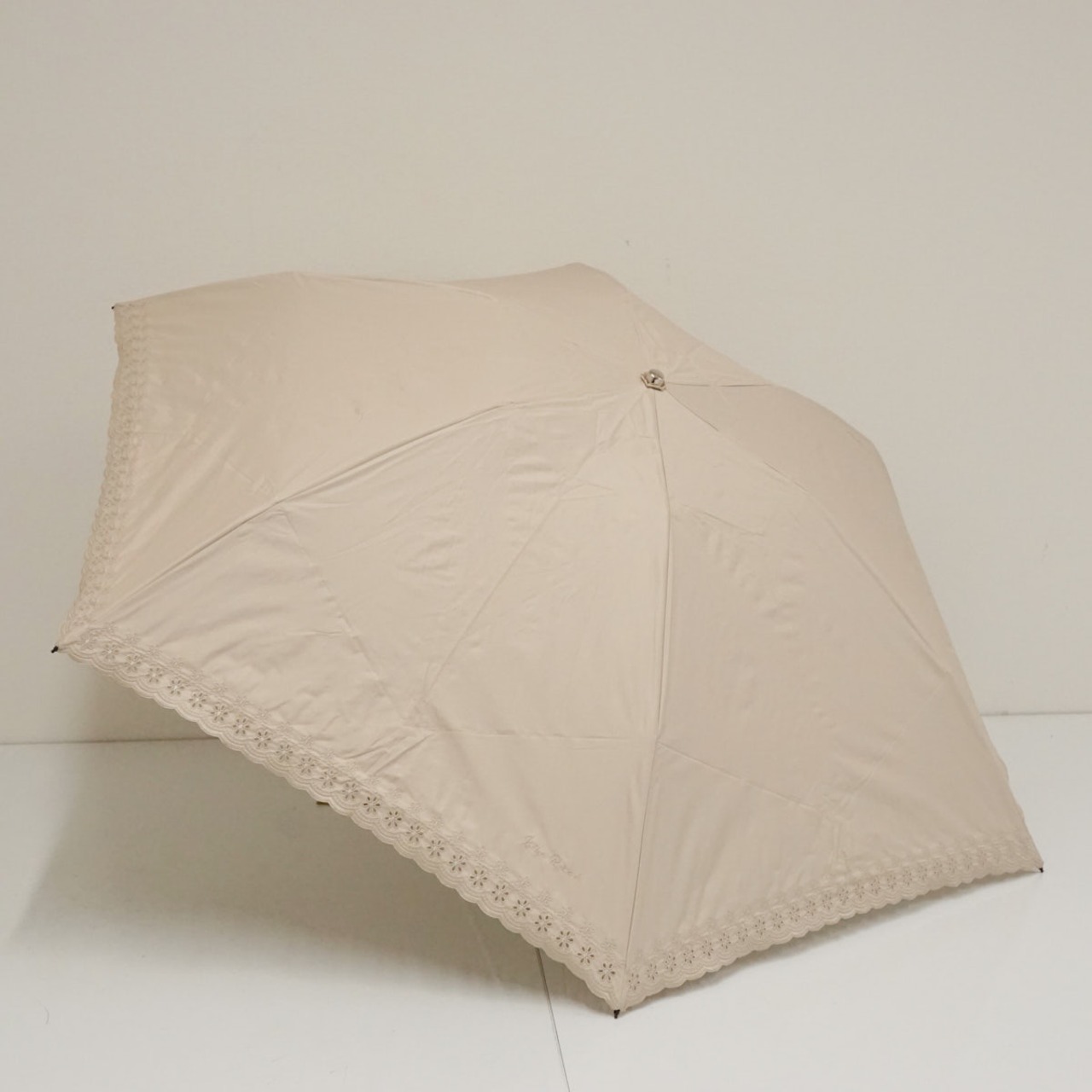 折りたたみ日傘 NINA RICCI ニナリッチ USED美品 晴雨兼用 ロゴ すそ刺繍 遮光 遮熱 UV ラージ ベージュ 55cm FA9285