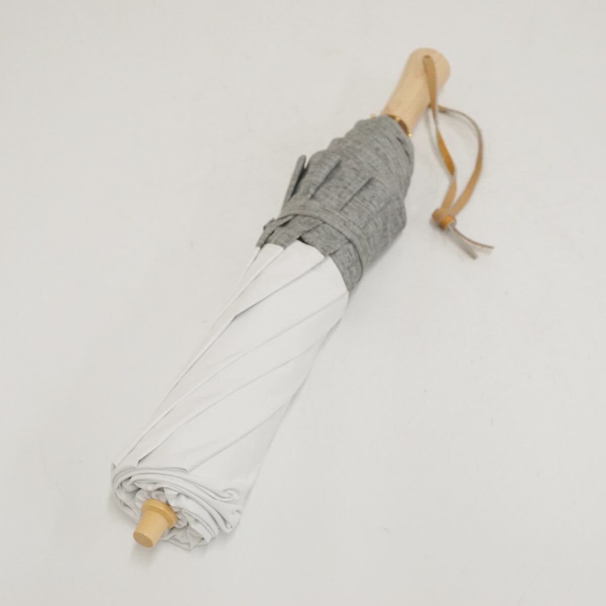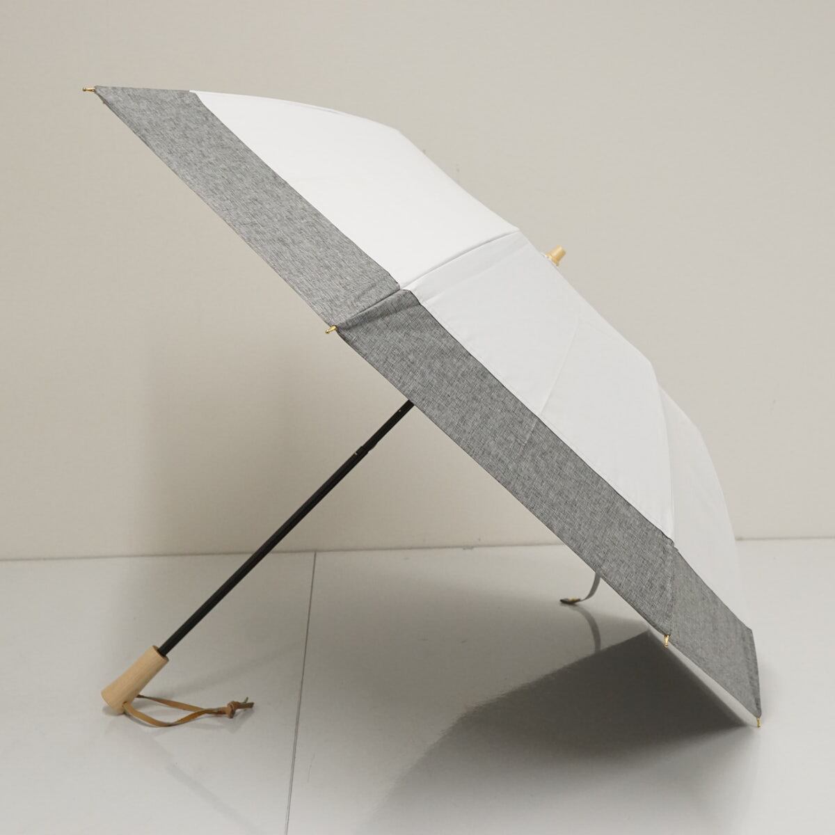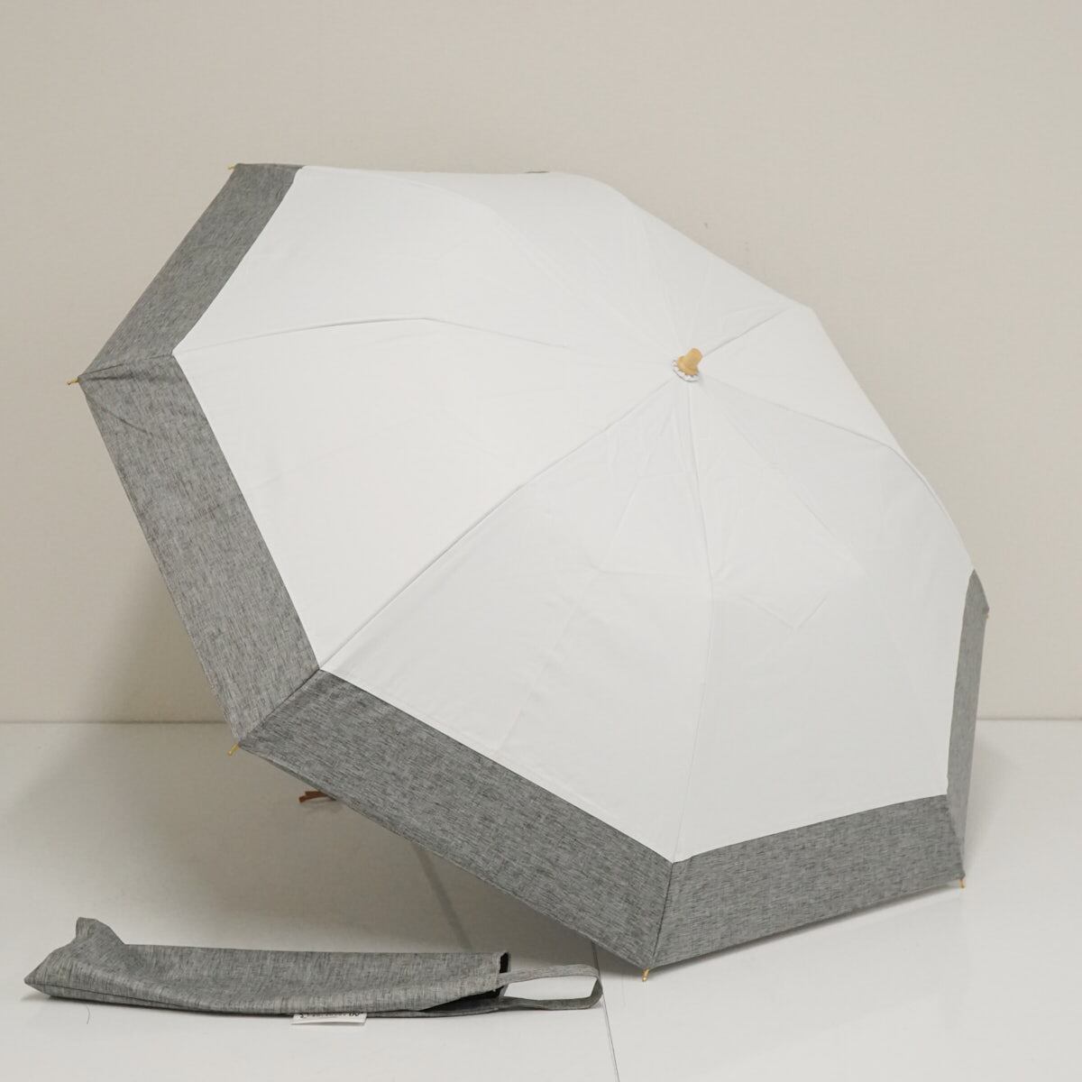 完全遮光日傘 SOLSHADE ソルシェード USED美品 折日傘 晴雨兼用 2WAY収納 遮光 UV ホワイト×杢グレー 50cm FA9288