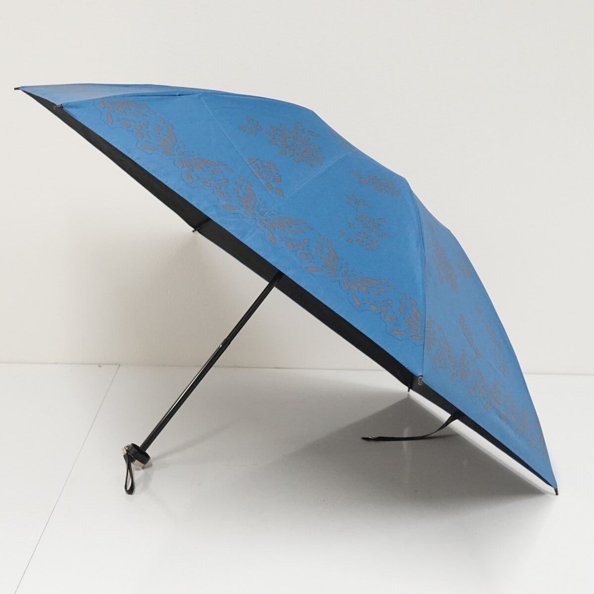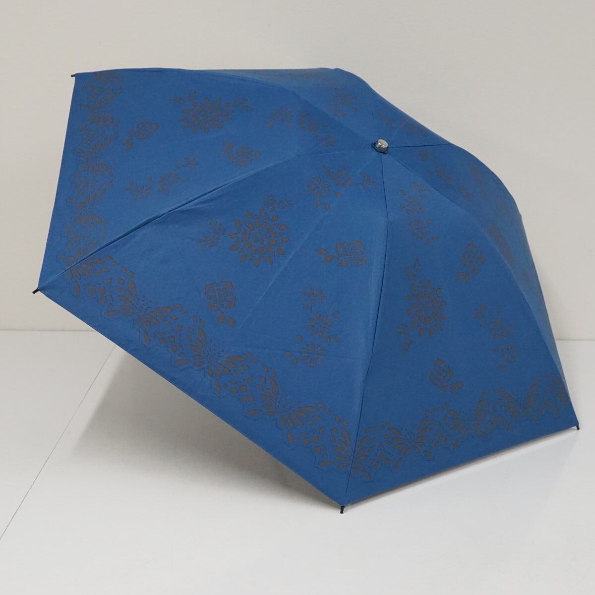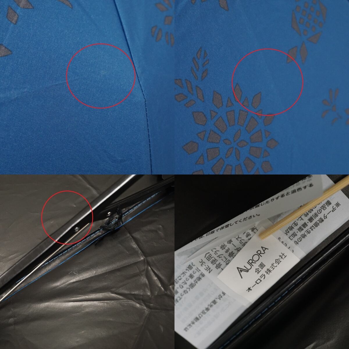 折りたたみ日傘 AURORA オーロラ(株) USED美品 晴雨兼用 フラワー 蝶 幾何学 軽量 遮光 UV ブルー 50cm FA9289