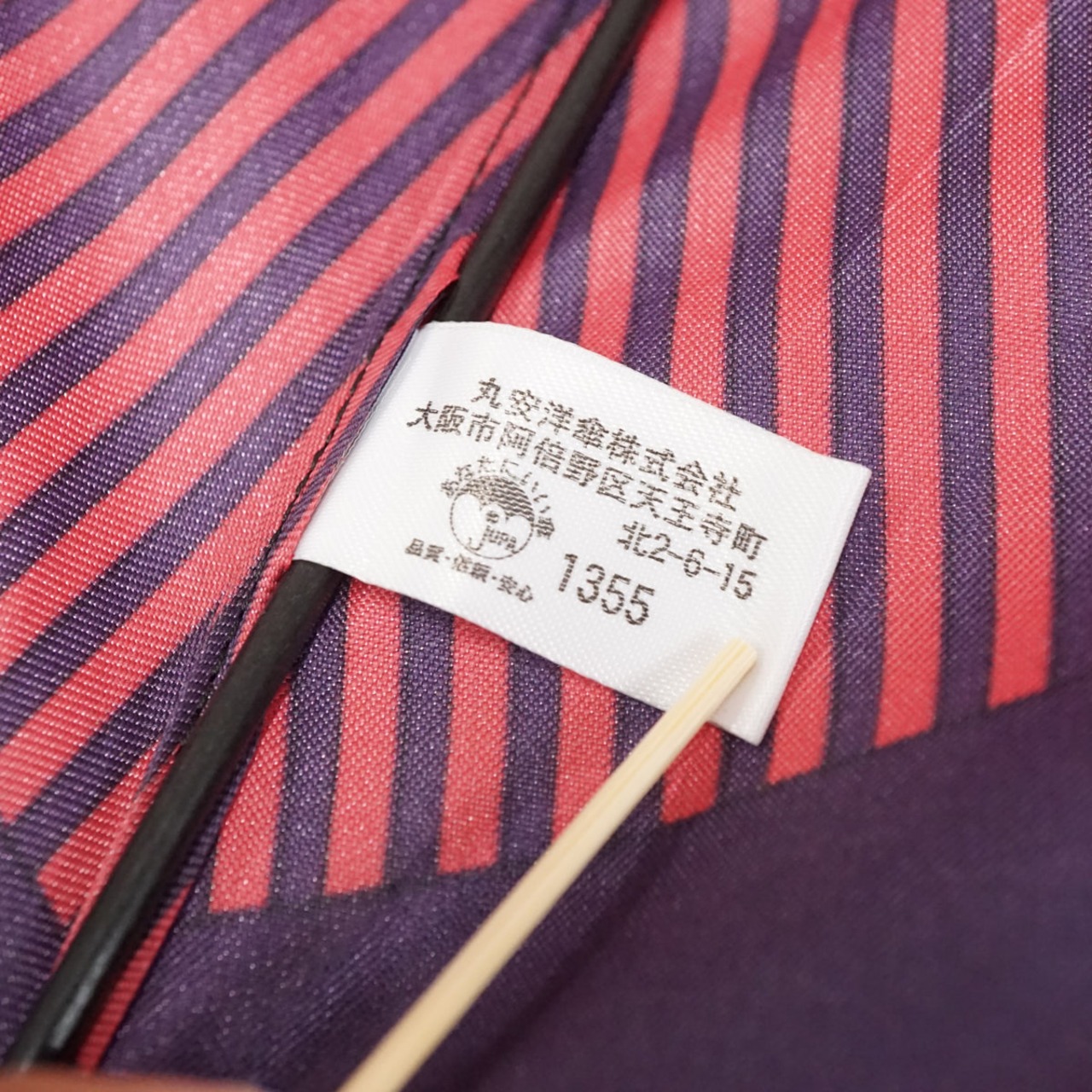 傘 丸安洋傘(株) USED美品 ストライプ ピンク バイオレット 日本製 グラス骨 ジャンプ 木製手元 高級 甲州織 60cm S3095