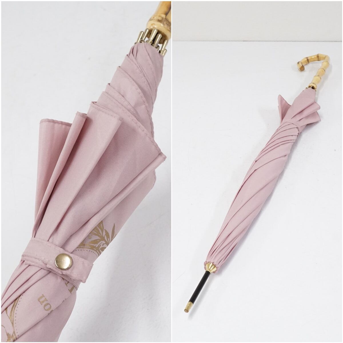 傘 Maison de FLEUR メゾンドフルール USED品 晴雨兼用 エンブレムプリント ピンク 深張り バンブーハンドル グラス骨 60cm A3089