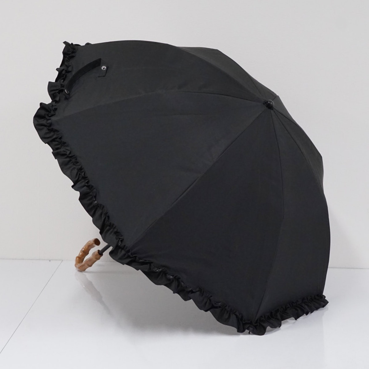 こちらはたたみやすく使いやすい2段折タイプで、ブラック生地にフリルの縁取りが可愛らしいデザインです。