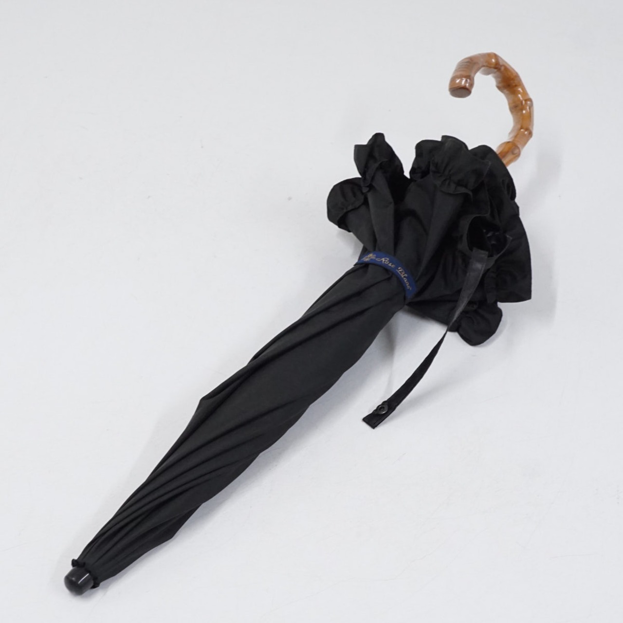 完全遮光折日傘 芦屋ロサブラン USED美品 2段折 シングルフリル ブラック 黒 寒竹手元 UV 遮熱 折りたたみ 50cm FS8924