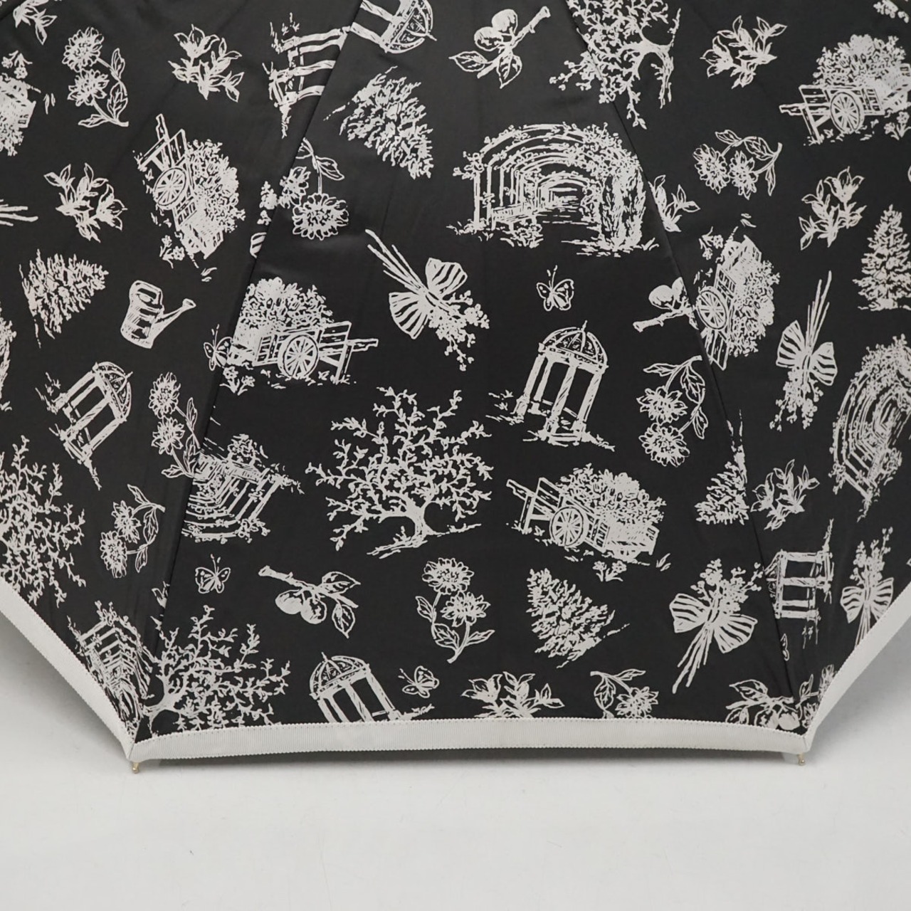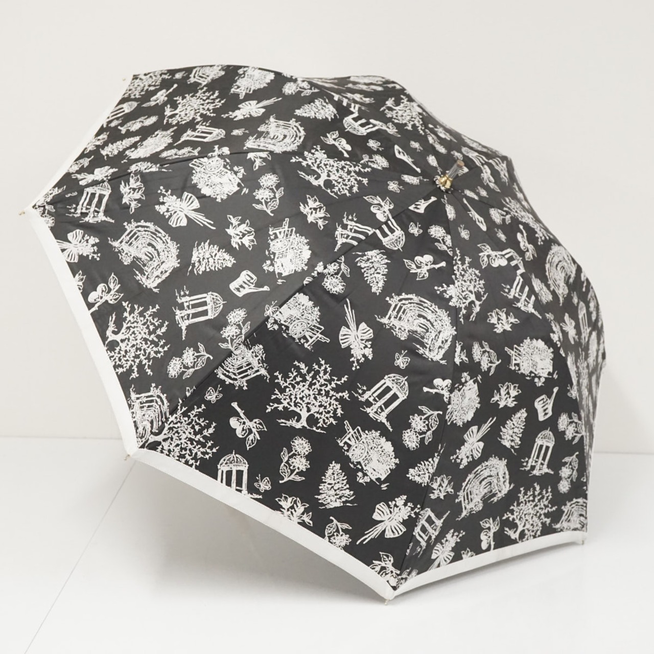 晴雨兼用日傘 MOONBAT ムーンバット USED美品 フラワー 建物 洋風 ブラック 遮光 UV 55cm A3098