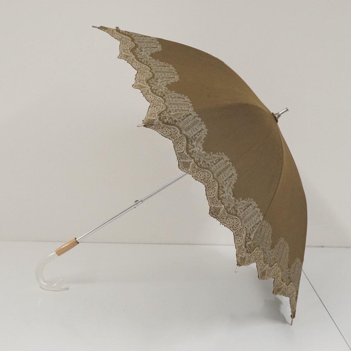 日傘 mila schon ミラショーン USED美品 遮光 遮熱 ブランド 刺繍 おしゃれ UV カーキ 47cm S3099