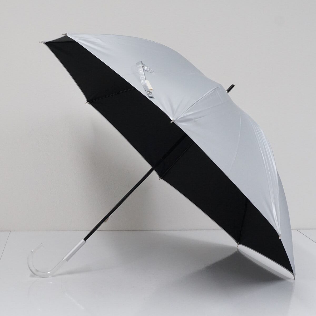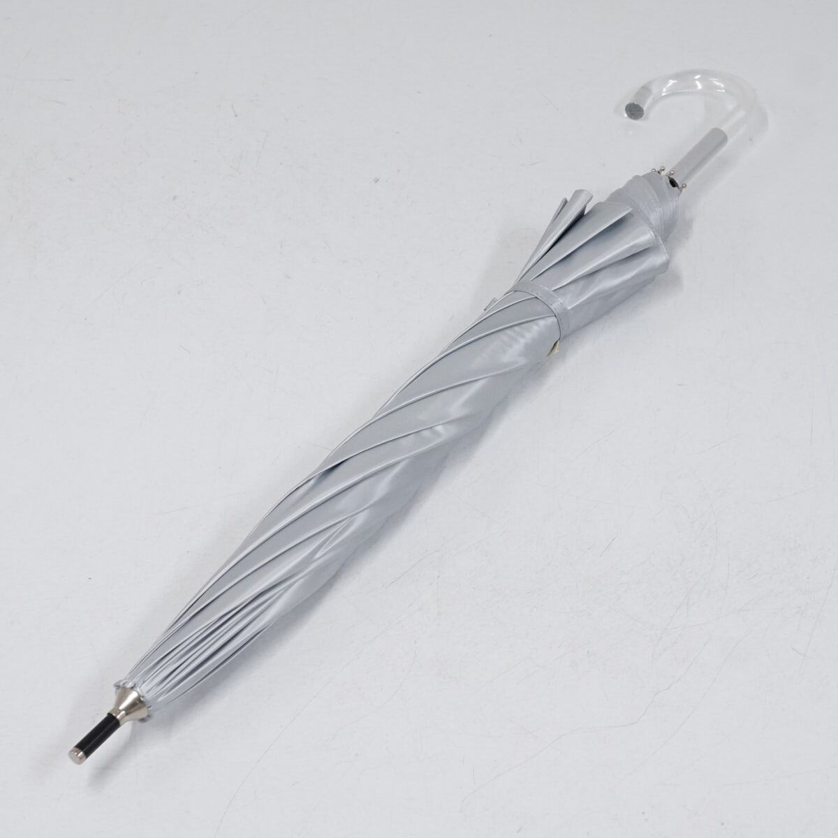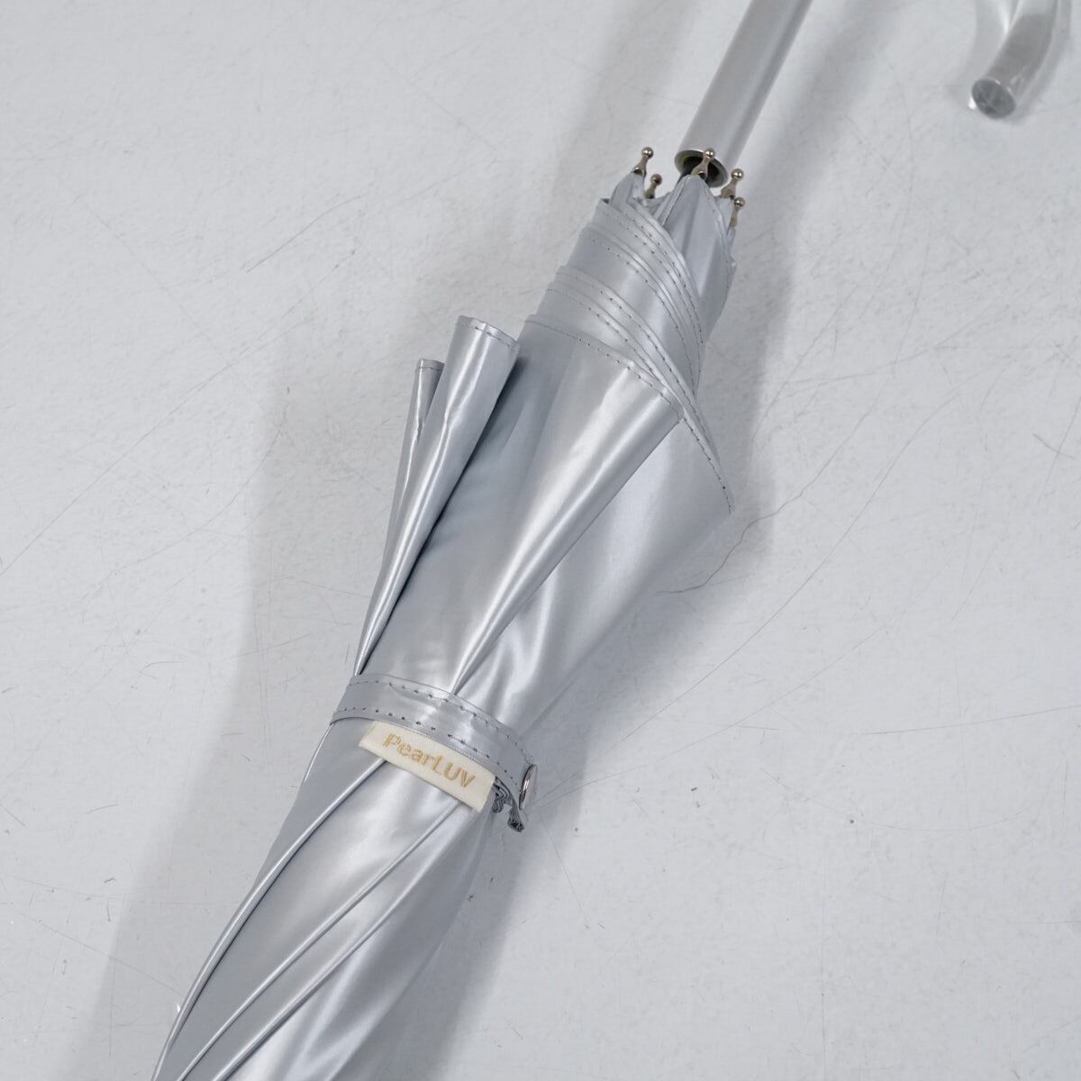 シルバーの生地がパールのような輝きを放つ、「PearLUV」の晴雨兼用パラソルです。