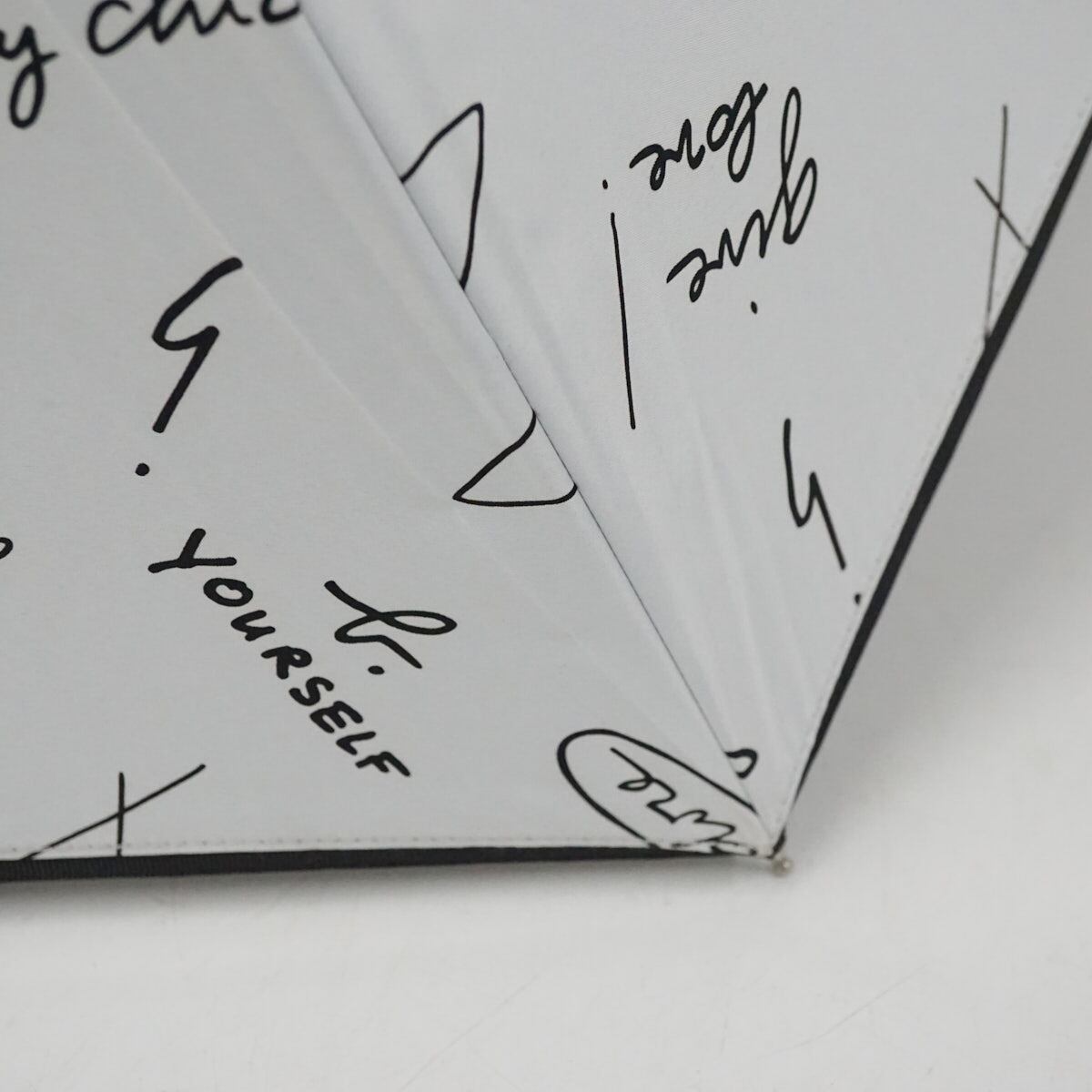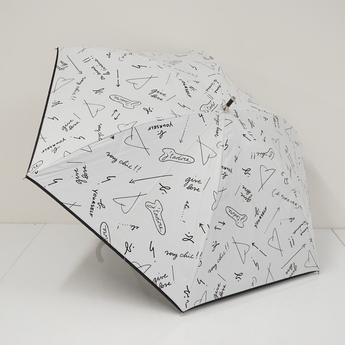 晴雨兼用日傘 agnes b. アニエスベー USED美品 手書き文字柄 モノトーン 東レサマーシールドLll 遮光 遮熱 50cm S3101
