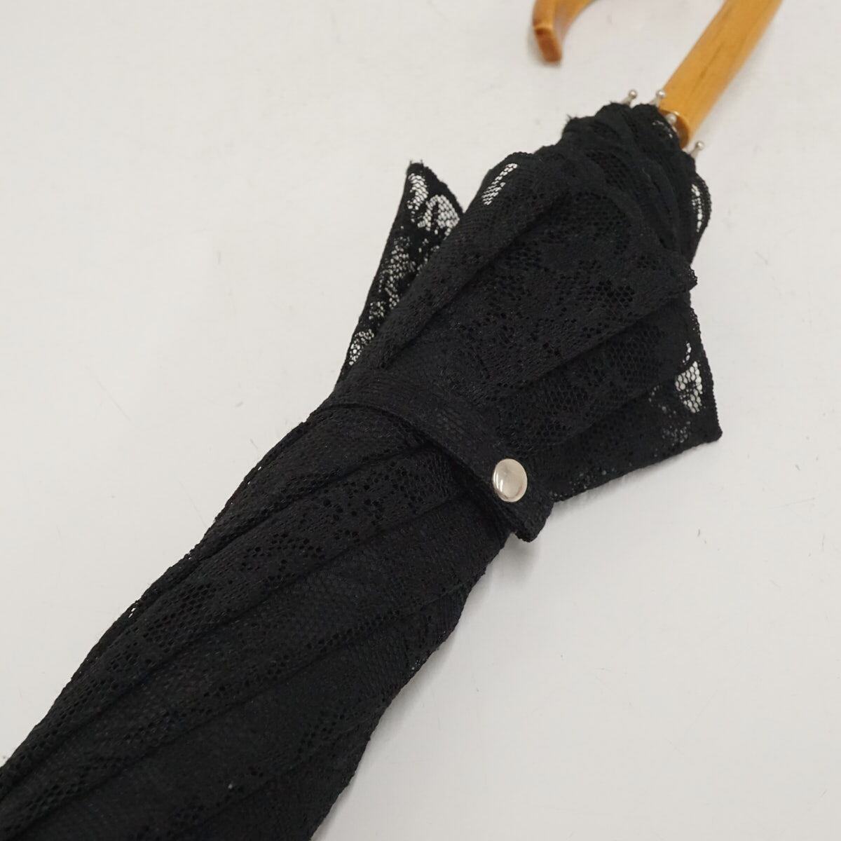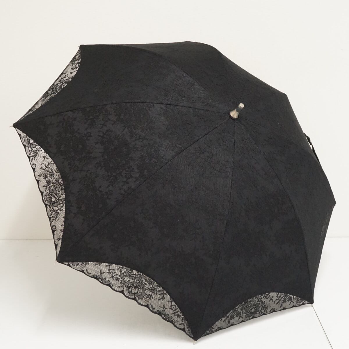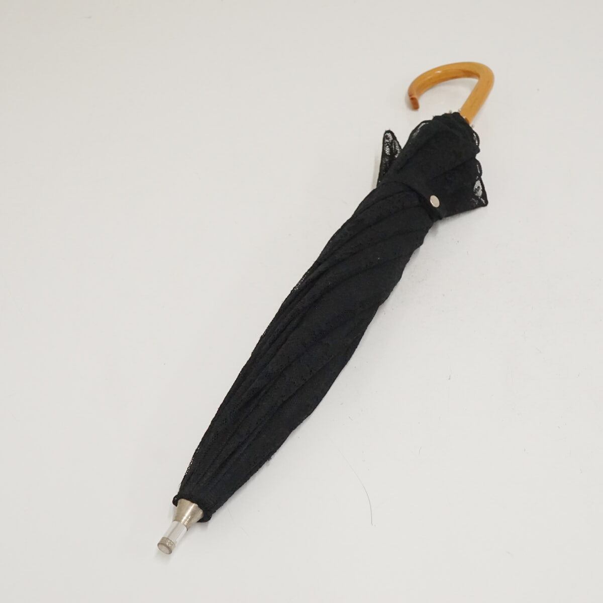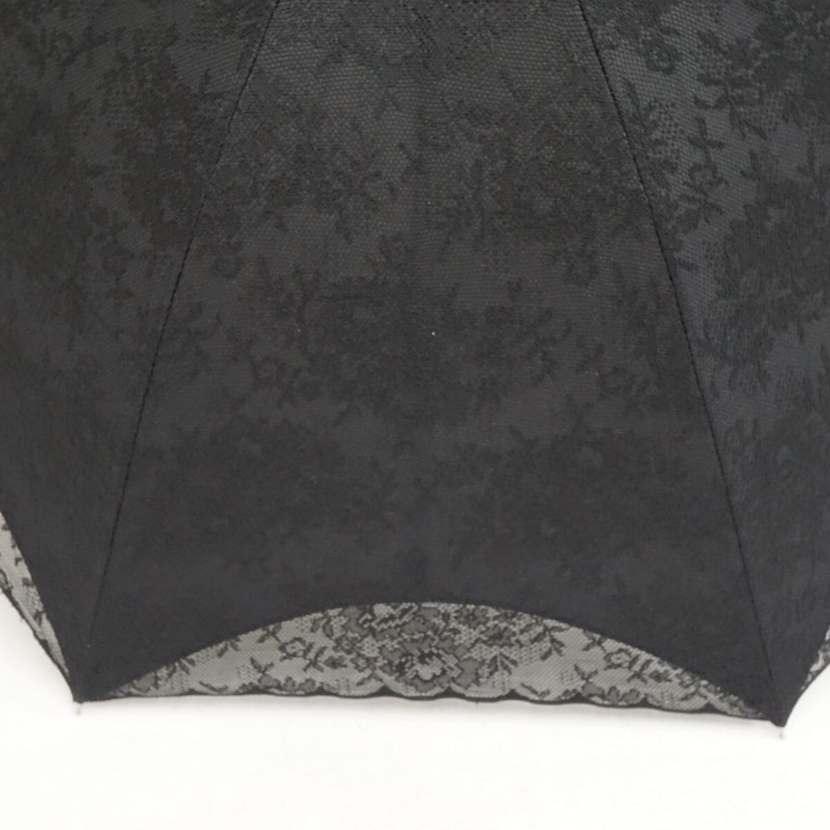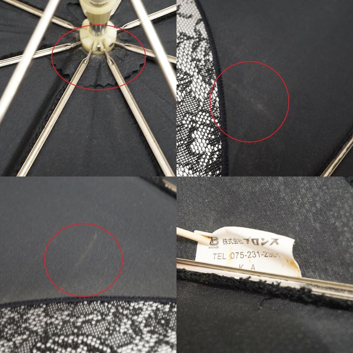 日傘 ブロンズ USED美品 フラワー レース 黒 ブラック×ブラック 晴雨兼用 UV 遮光 遮熱 木製手元 50cm A3110