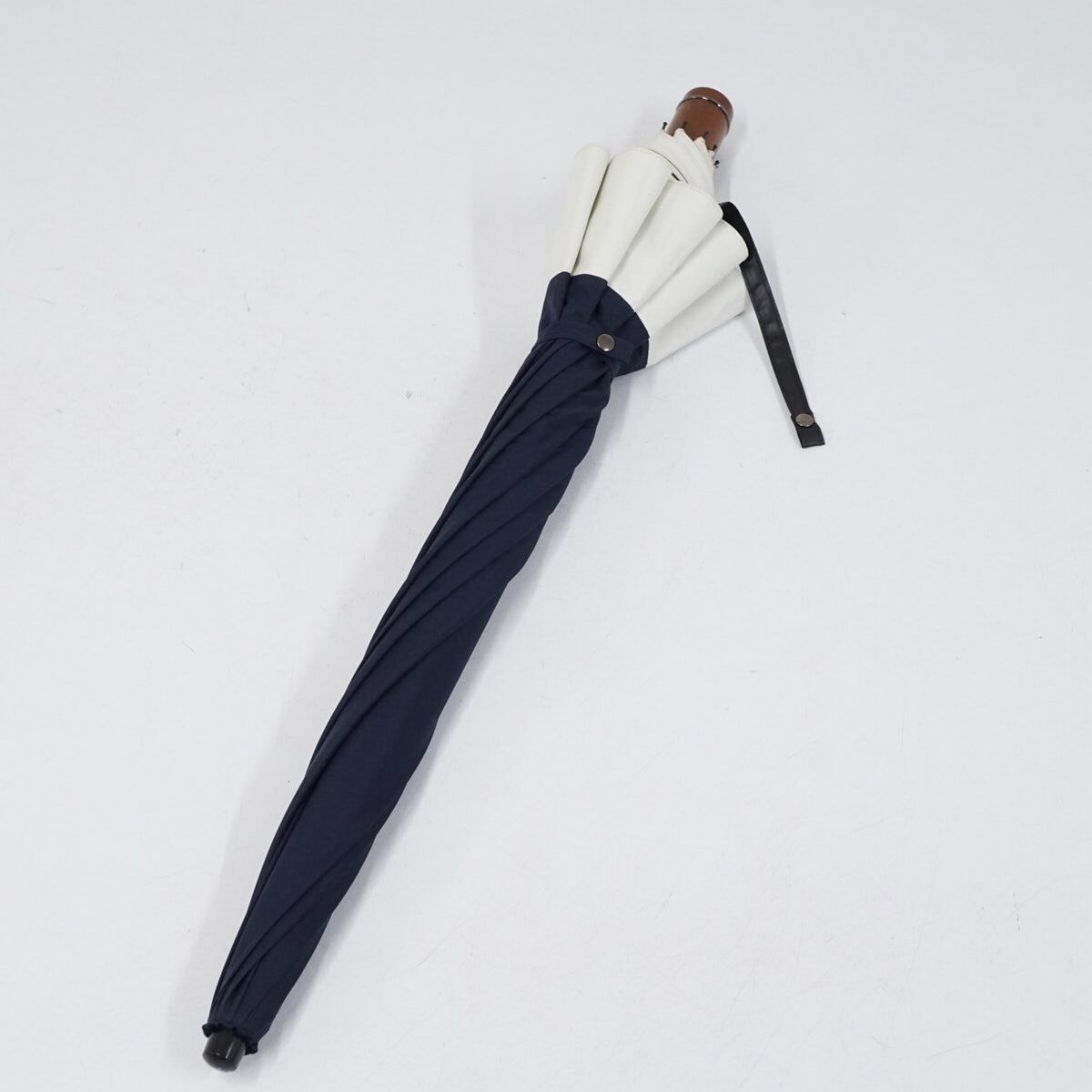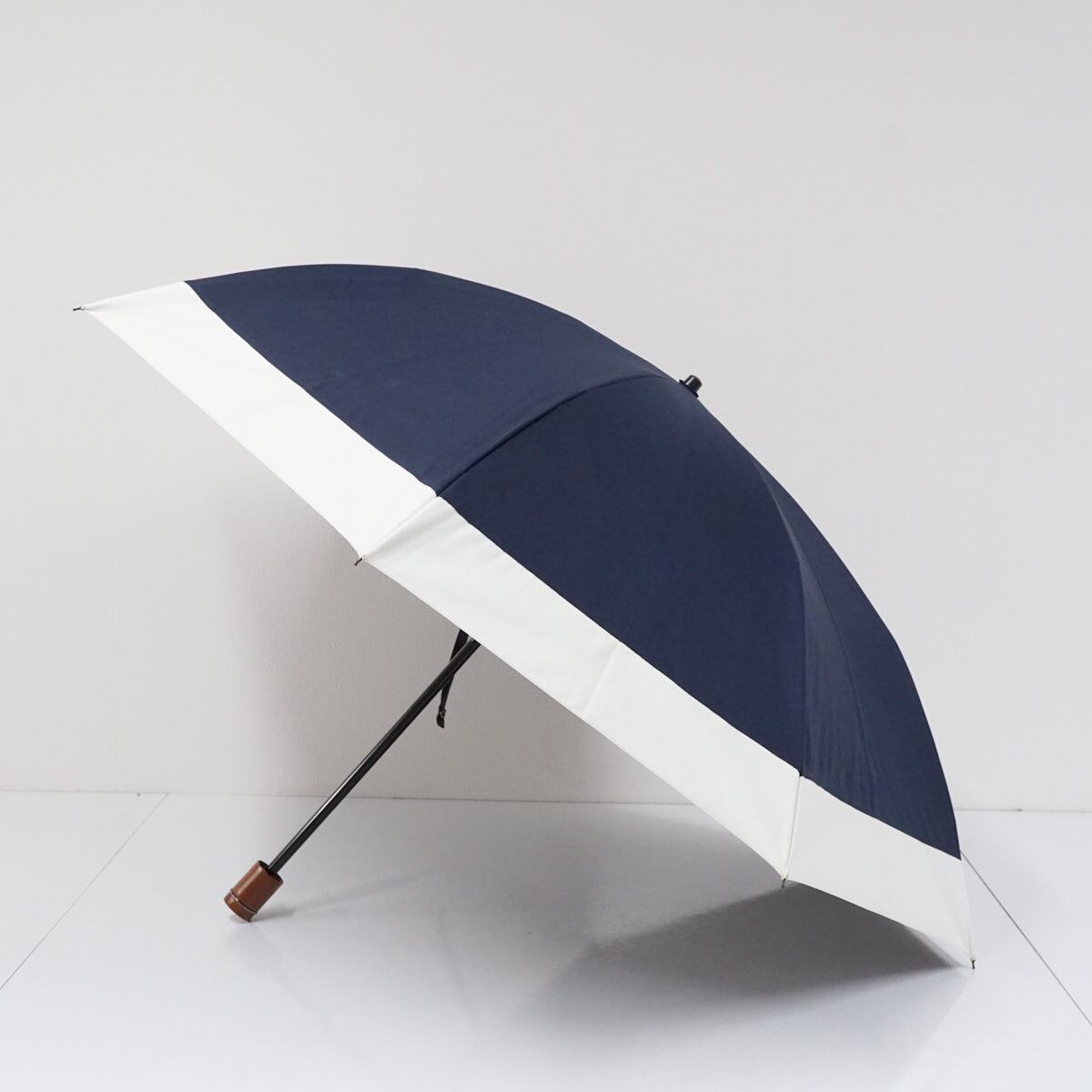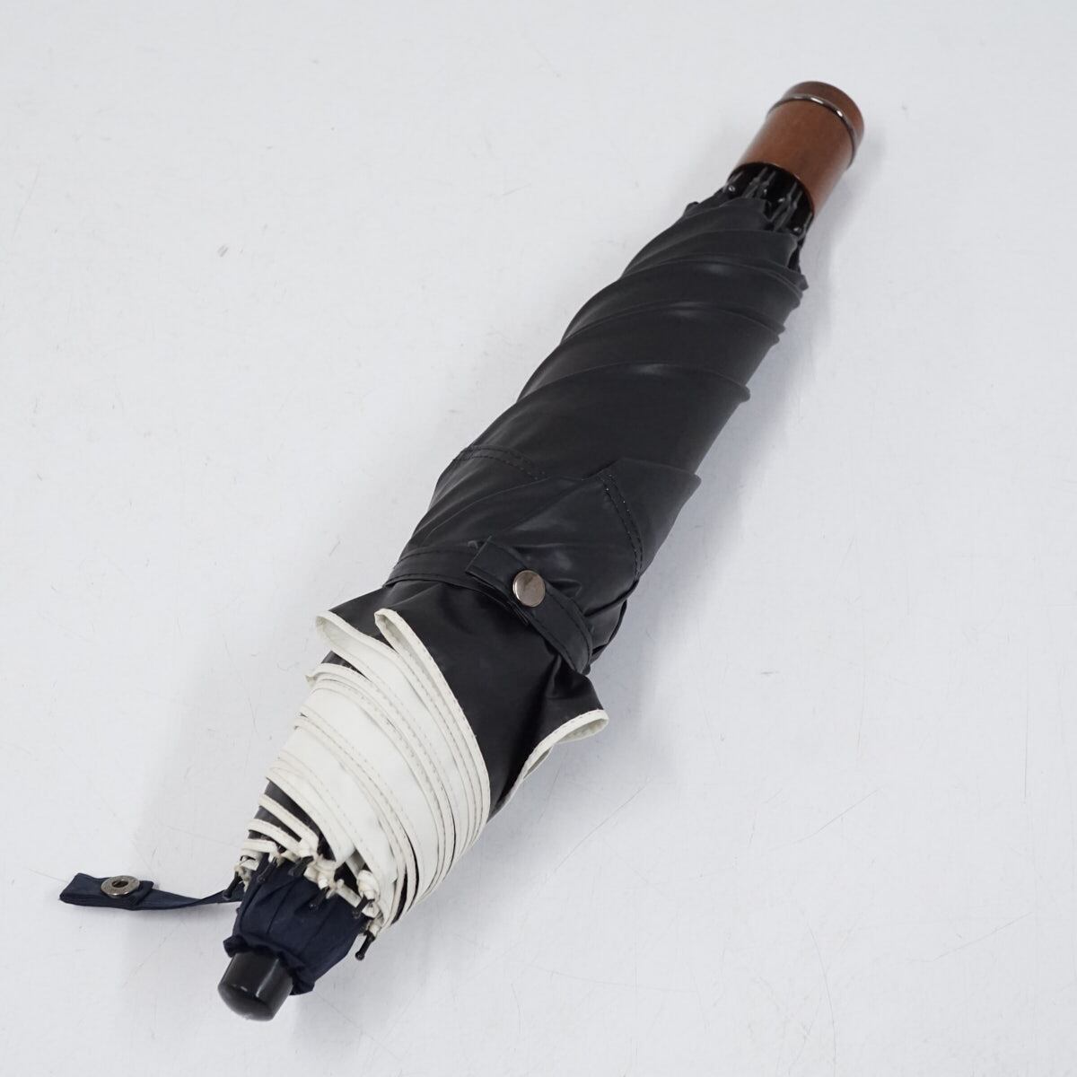 完全遮光折日傘 芦屋ロサブラン USED美品 2段折 コンビ UV 遮熱 折りたたみ ネイビー×アイボリー ラージ 60cm FS9303