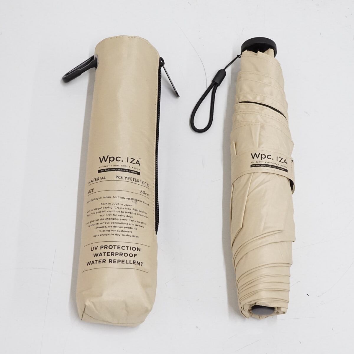 折りたたみ日傘 Wpc.IZA USED美品 LIGHT&SLIM 晴雨兼用 ベージュ UV 遮光 遮熱 男女兼用 イーザ 軽量 55cm FA9311
