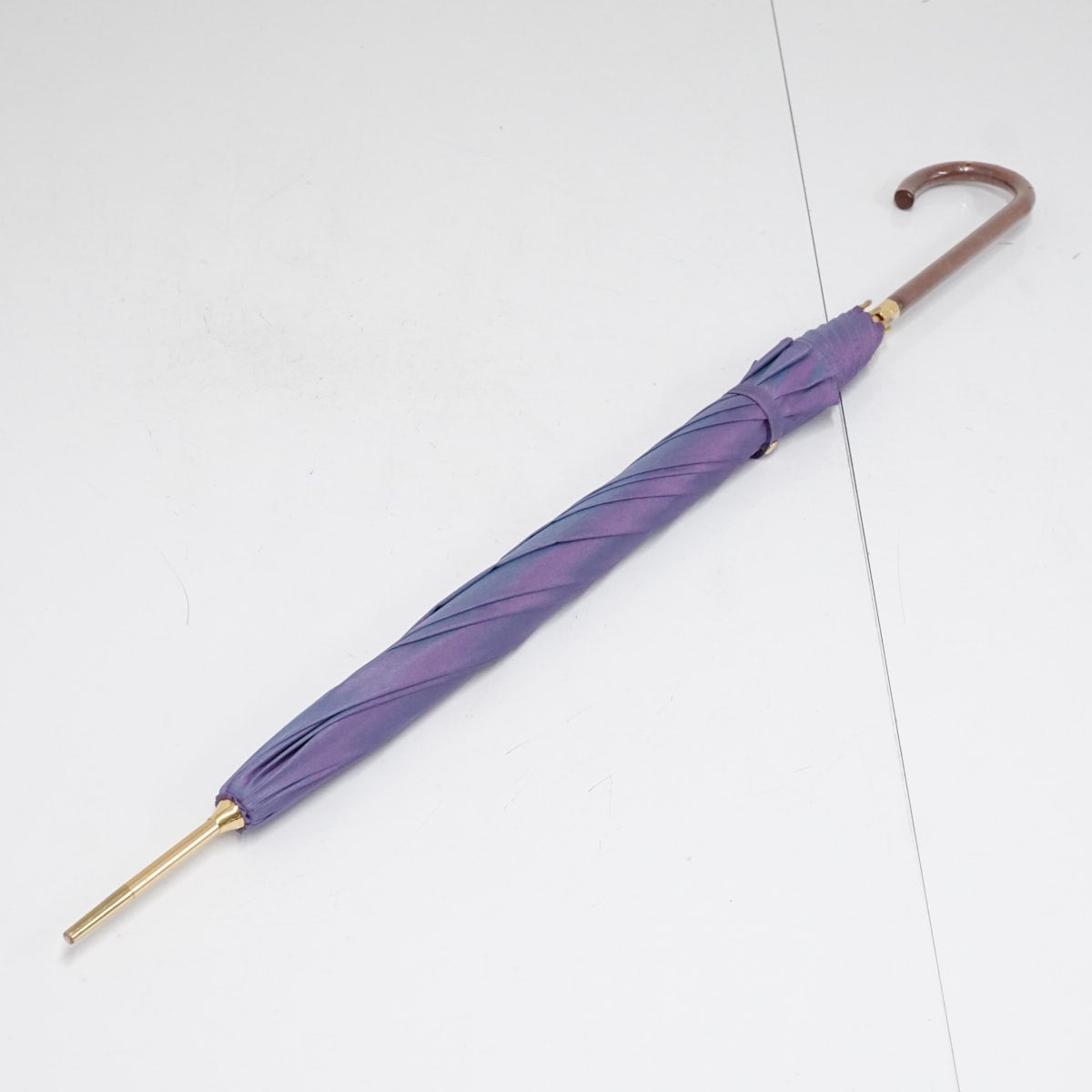 傘 Paul Stuart ポールスチュアート USED美品 レディース パープル系 色覚変化 グラス骨 シンプル ブランド 長傘 雨傘 55cm S3117