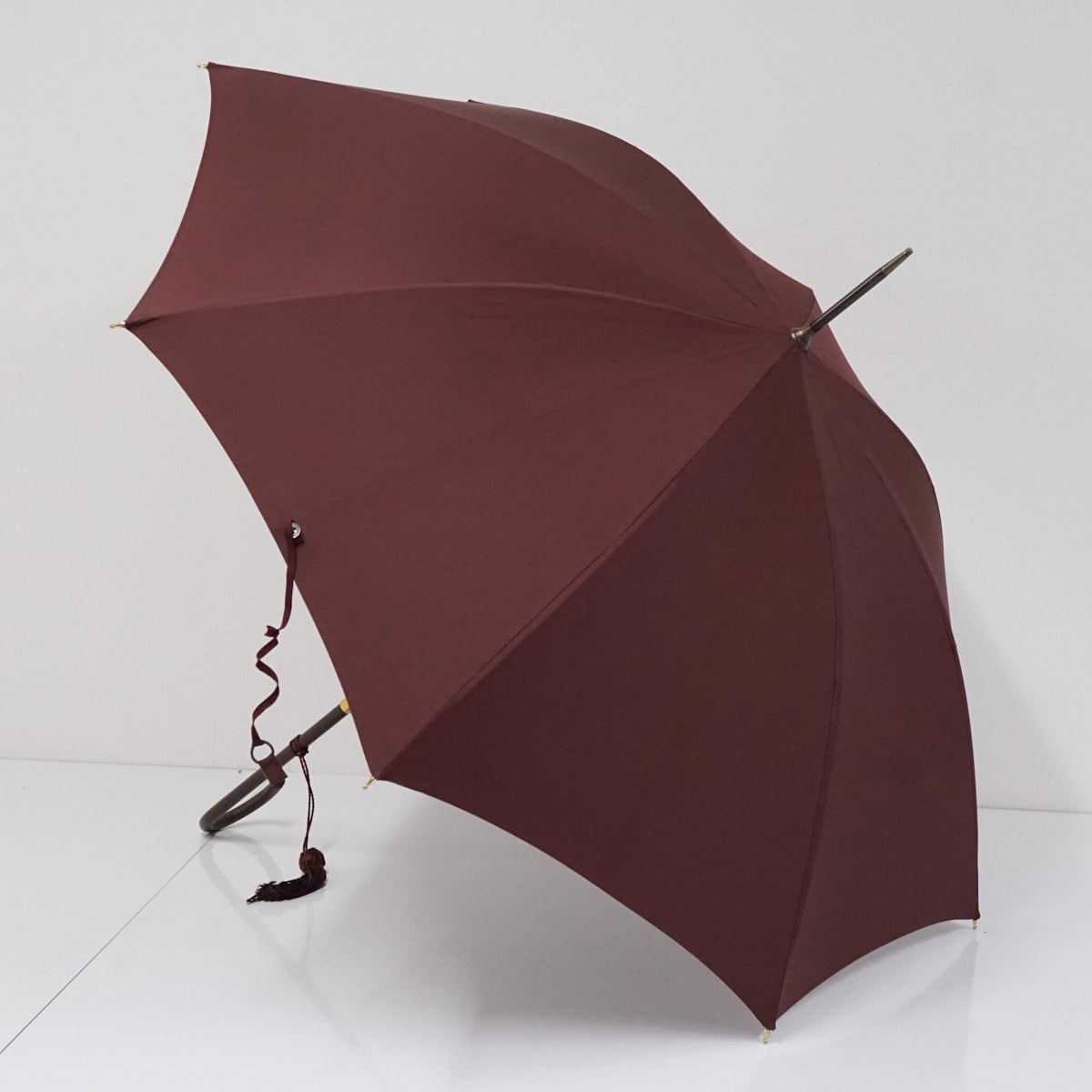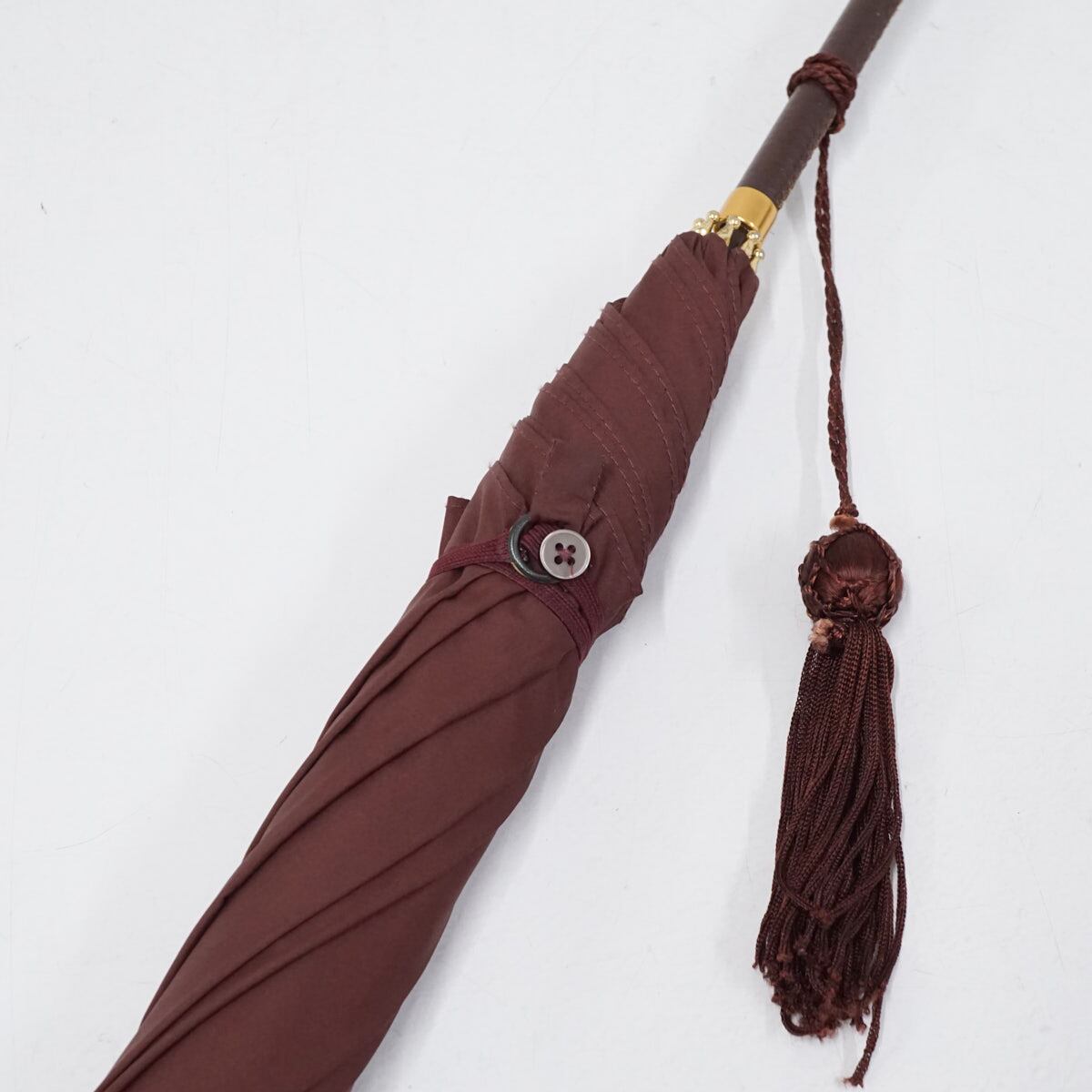 こちらはワインレッド系カラーのシンプルな生地に同色の長めのレザー手元とタッセルを合わせた逸品です。