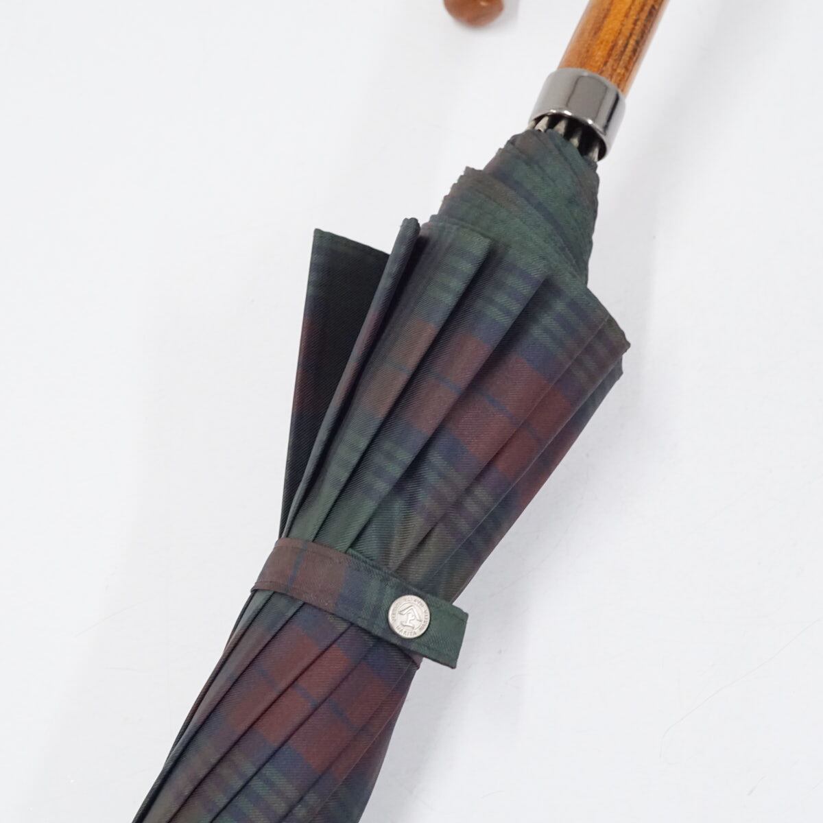 傘 槇田商店 USED美品 トラッド チェック 先染織物 木製手元 高級 Makita Trad 紳士傘 メンズ 65cm S3130
