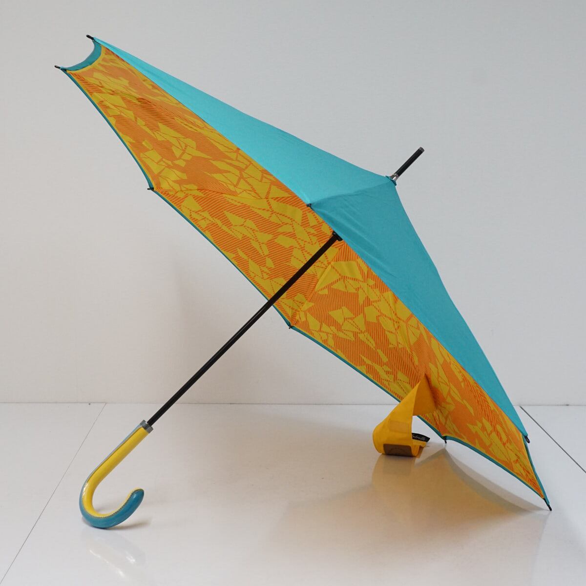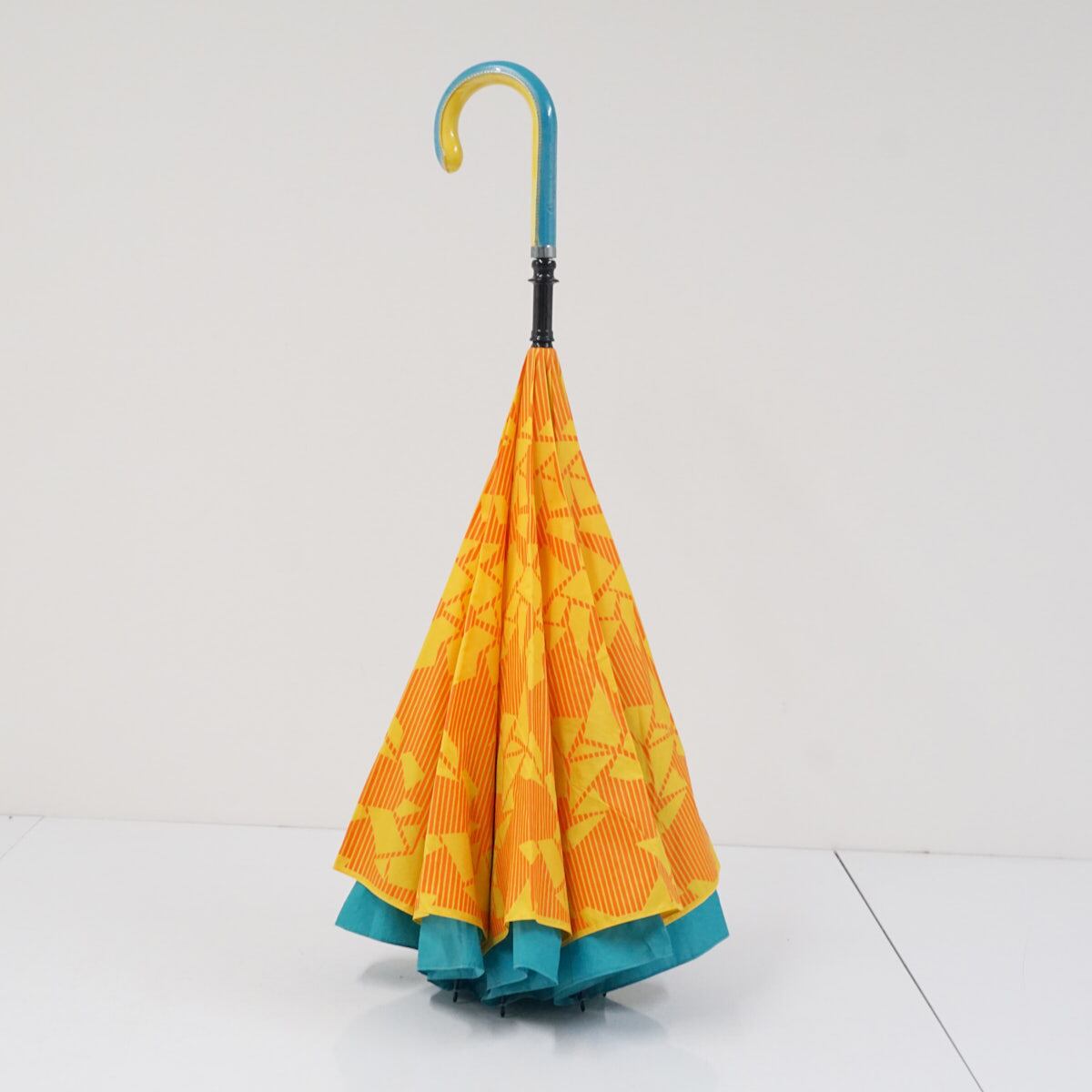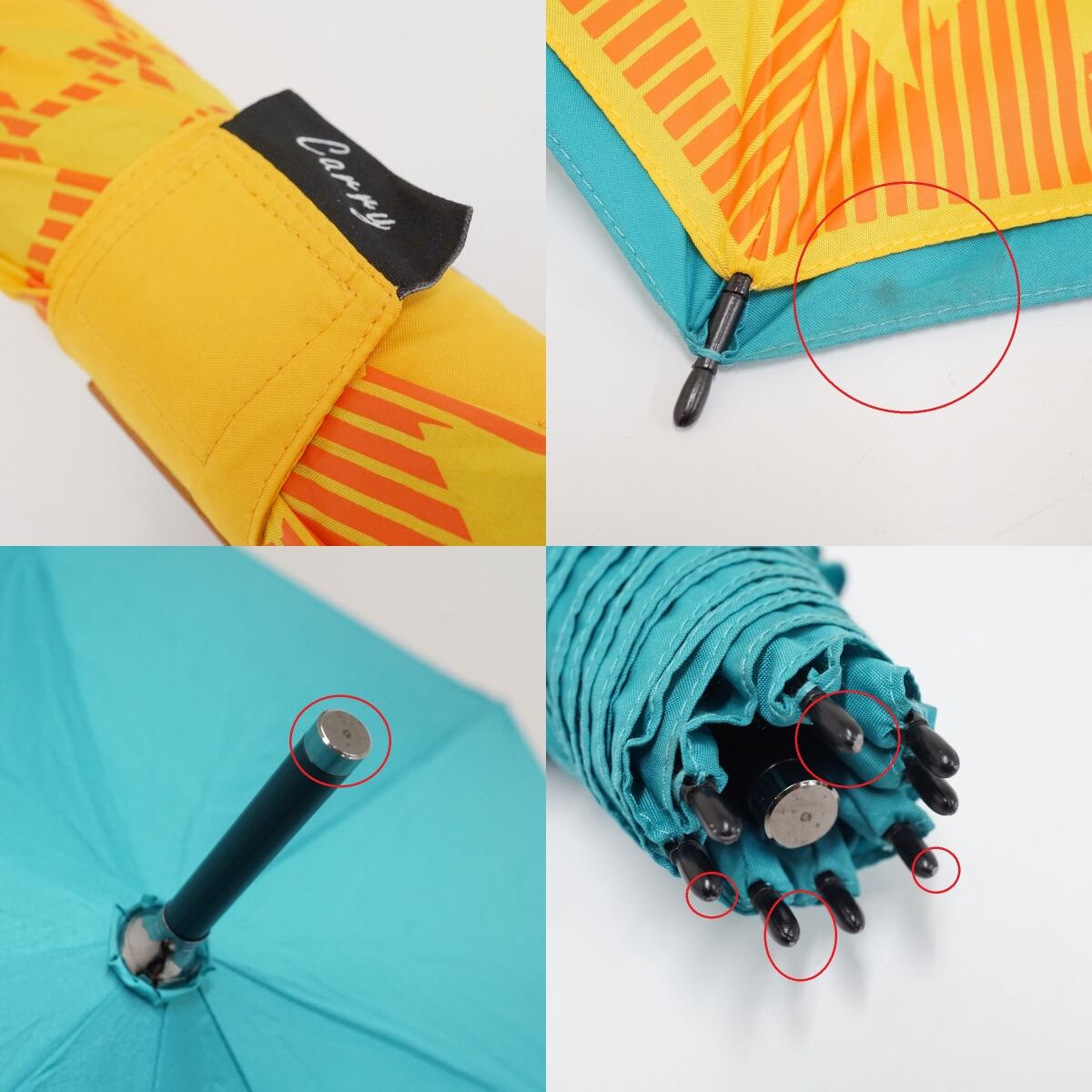 逆さ傘 CARRY saKASA キャリーサカサ USED美品 Cityモデル ライトブルー×イエロー 柄 自立する 晴雨兼用 濡れない傘 55cm S3128