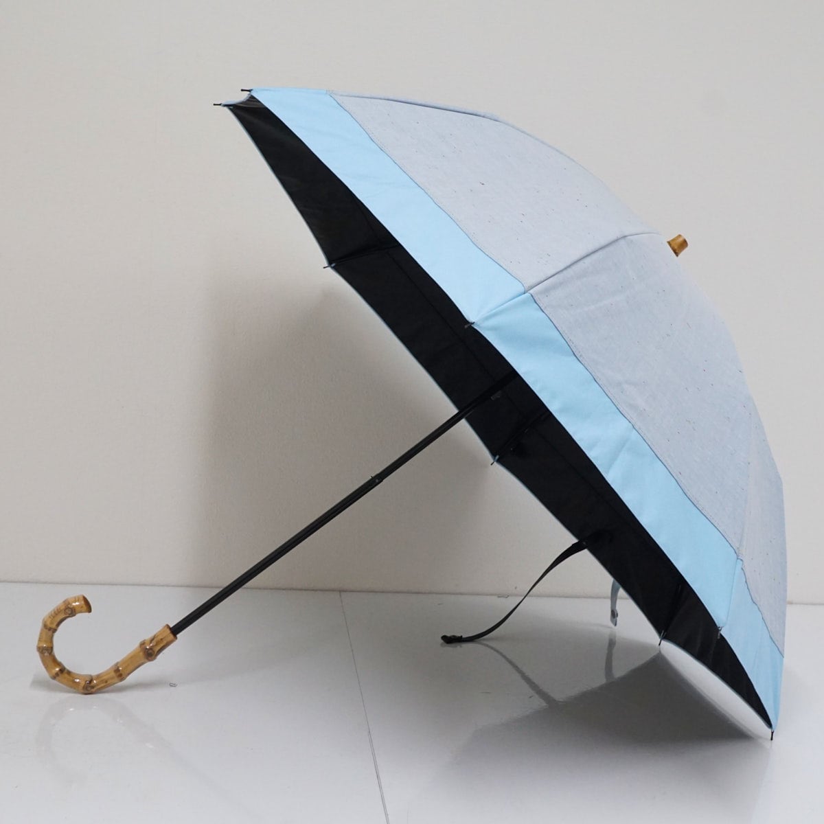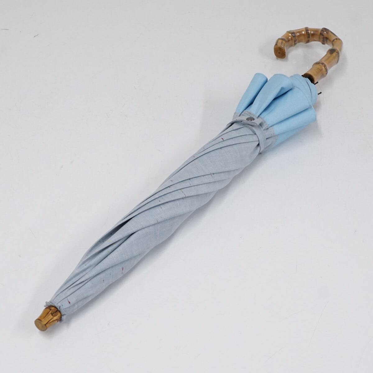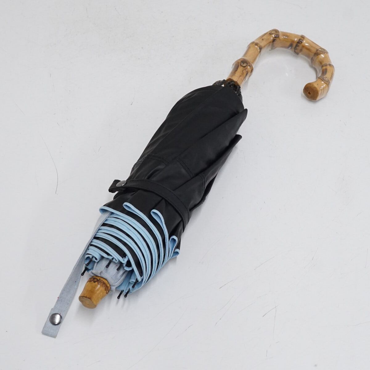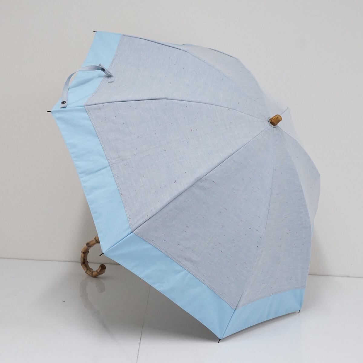 完全遮光折りたたみ日傘 BICHERIE. ビシェリ 晴雨兼用 USED美品 ネップダンガリー ライトブルー コンビ 2段 50cm FS9320