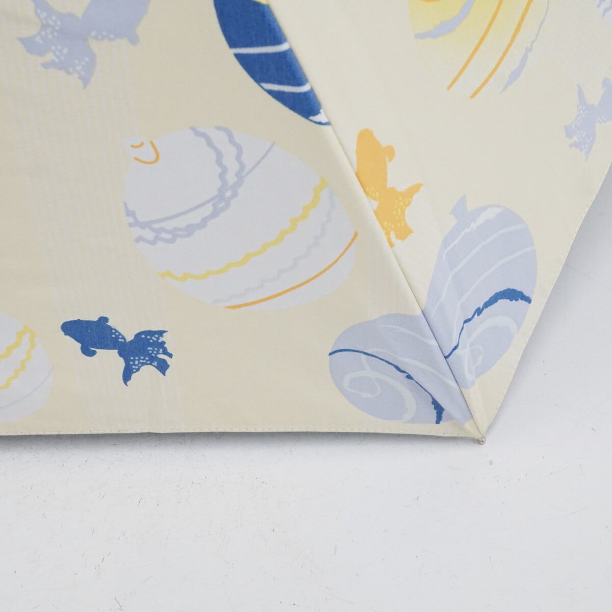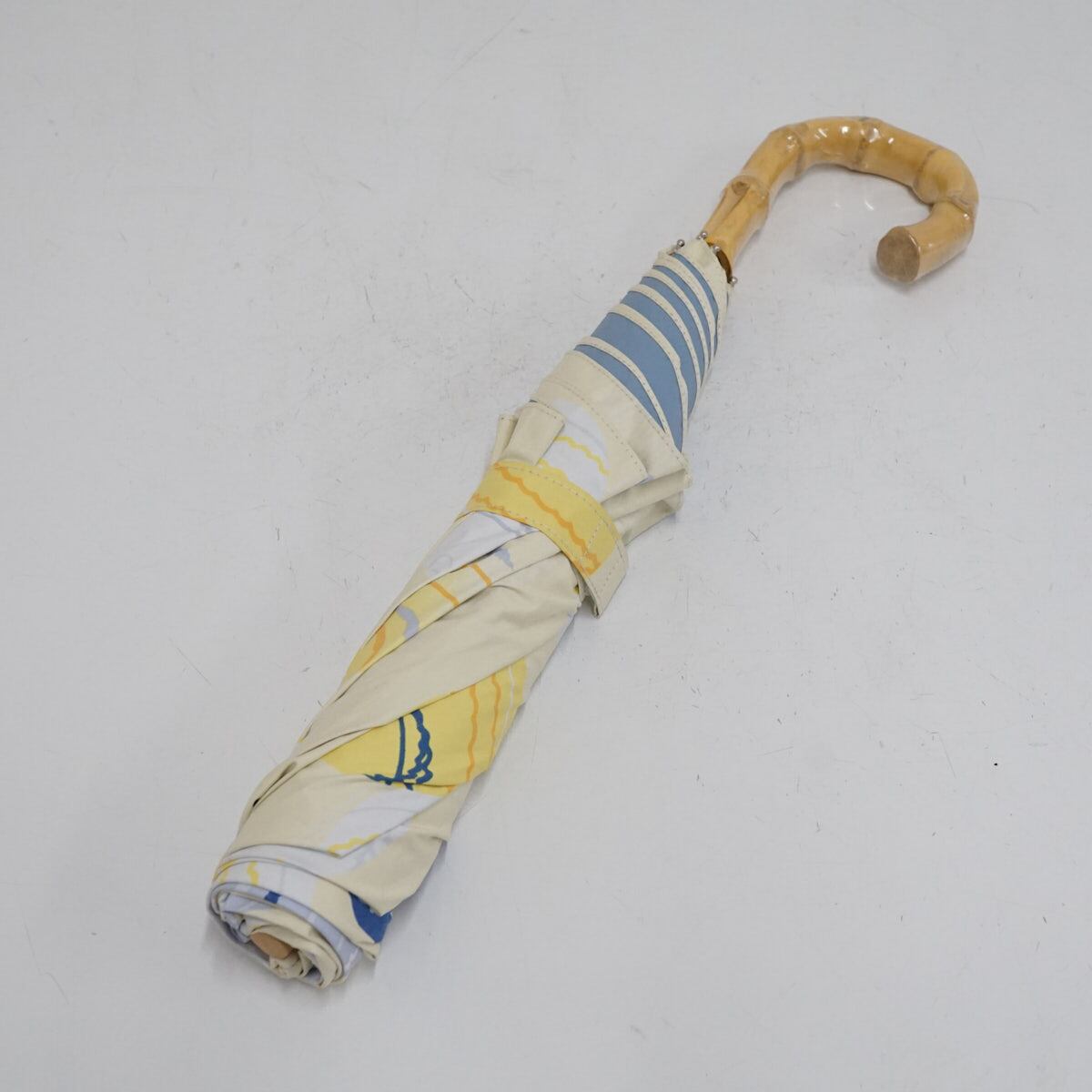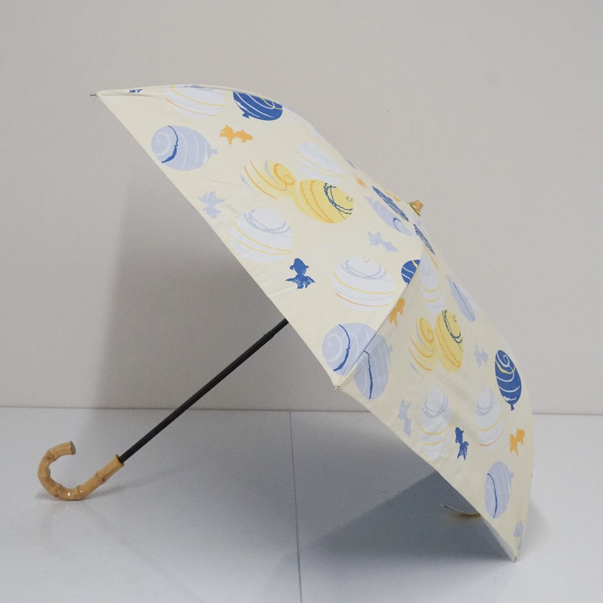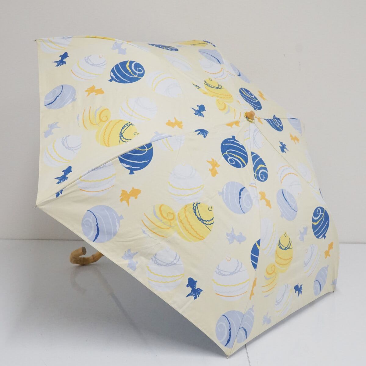 折りたたみ日傘 河馬印本舗 USED美品 晴雨兼用 水風船 和柄 UPF50+ 遮光 UV 薄卵色 寒竹手元 50cm FA9326