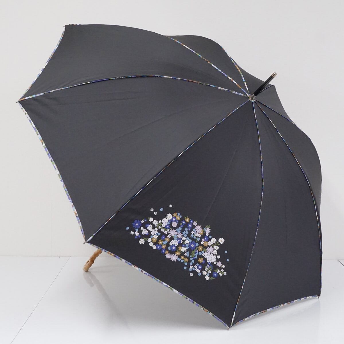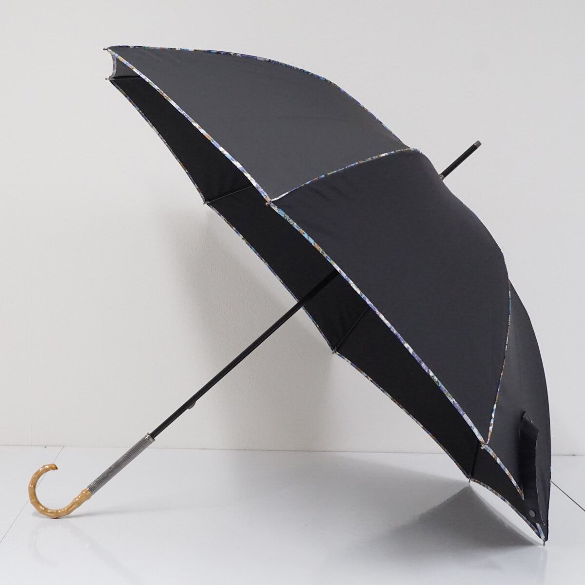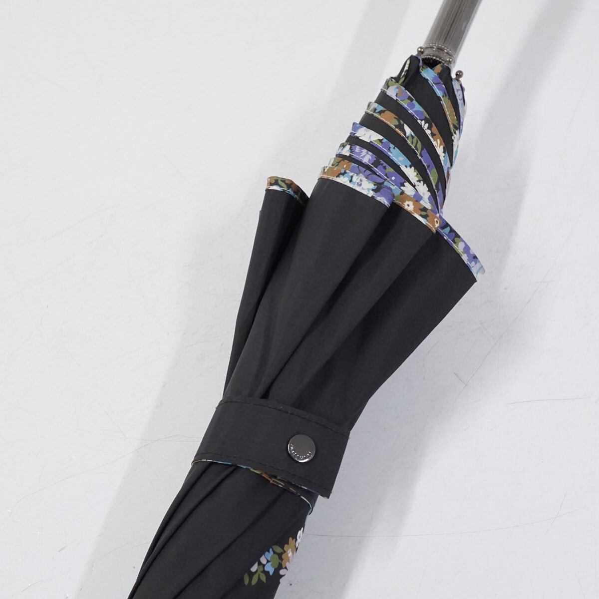 傘 JILLSTUART ジルスチュアート USED美品 雨傘 パイピング 花柄 リバティ ブラック 60cm A3141