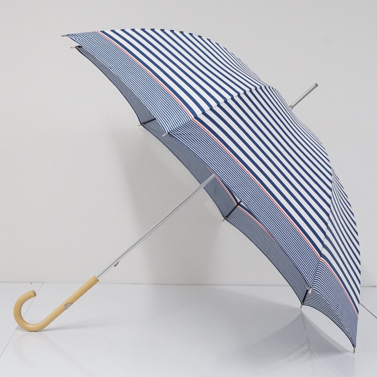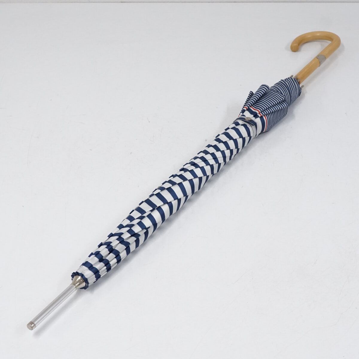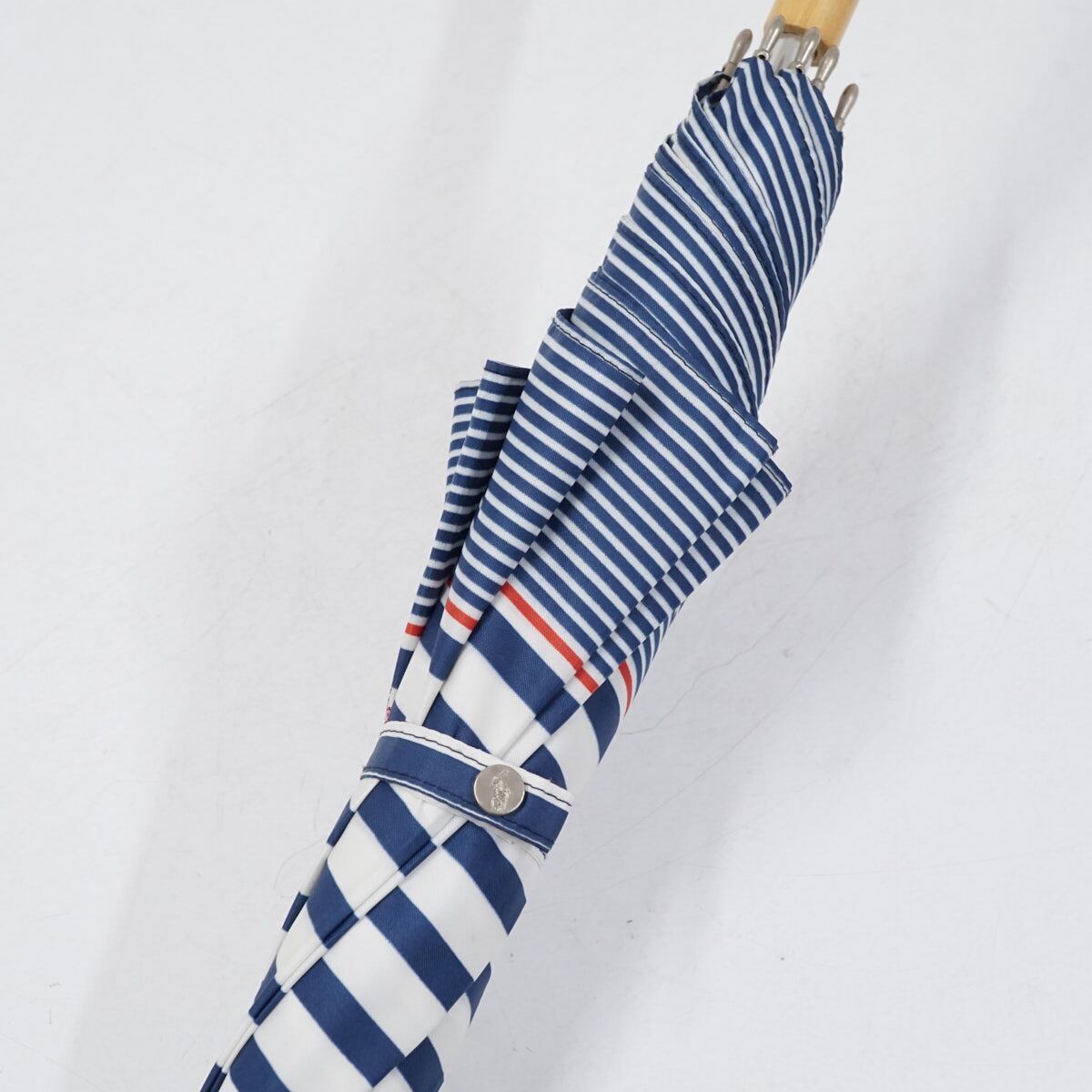 傘 Polo Ralph Lauren ポロラルフローレン USED美品 ネイビー レディース ボーダー ポロマーク 木製手元 60cm S3143