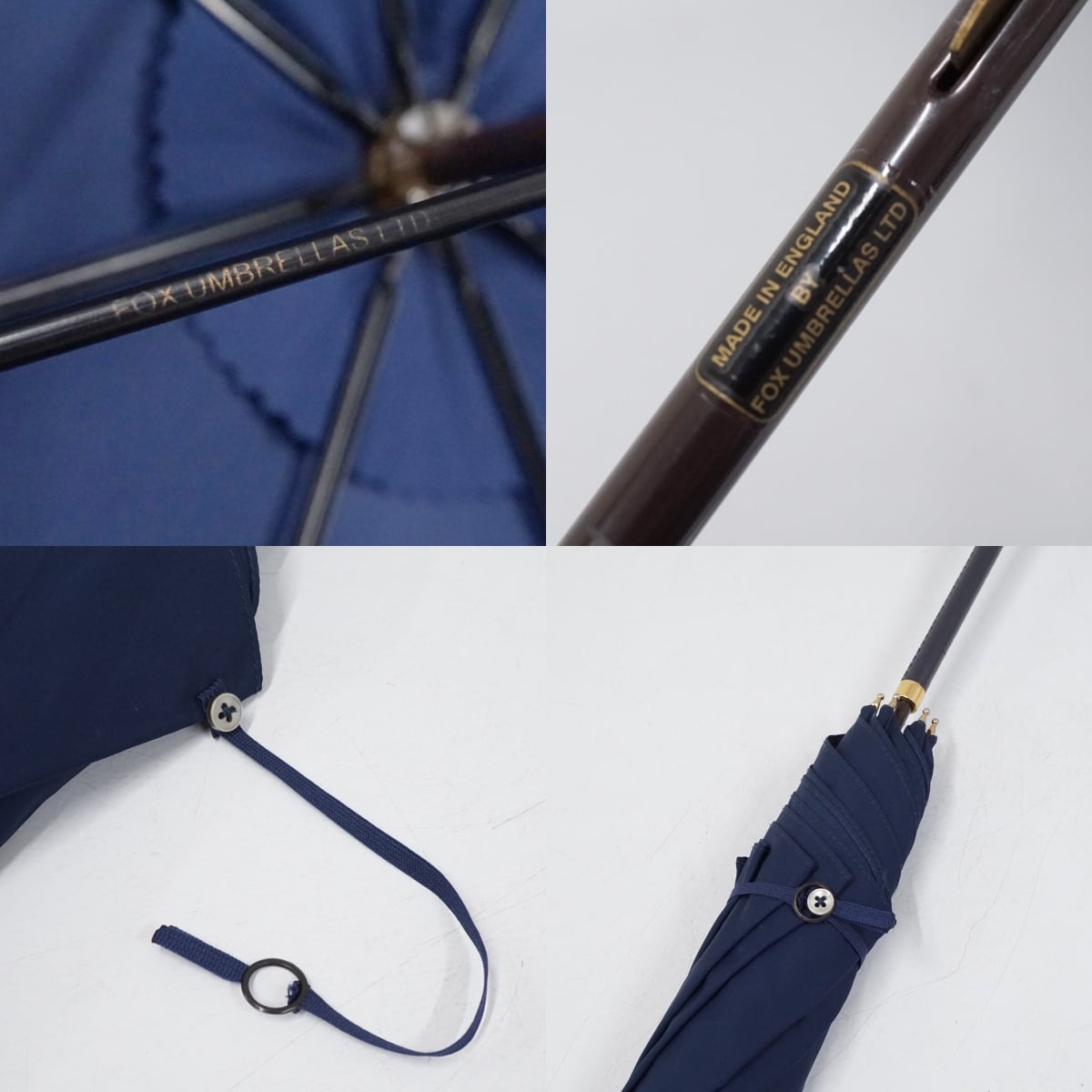 晴雨兼用傘 FOX UMBRELLAS フォックス アンブレラズ USED品 細巻 ネイビー 英国製 レザー手元 51cm S3139