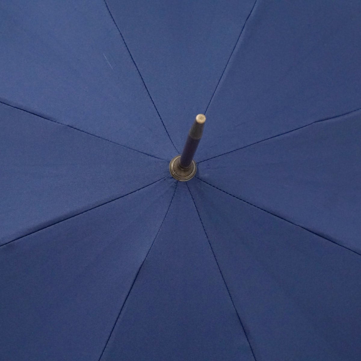 こちらはネイビー系カラーのシンプルな生地に同色の長めのレザー手元を合わせた逸品です。