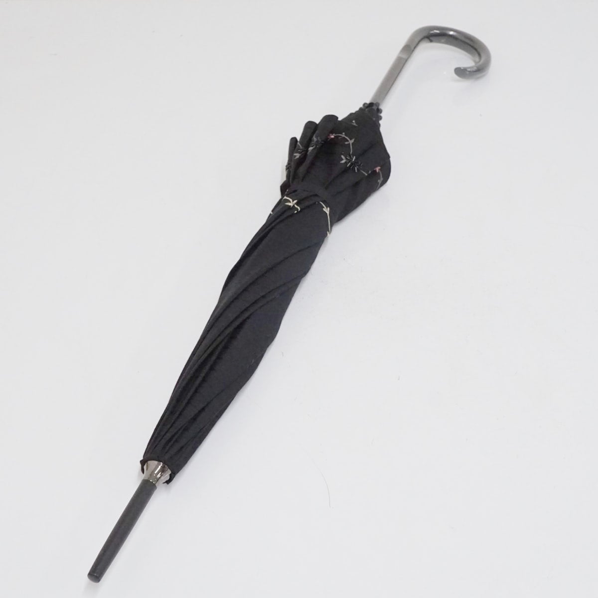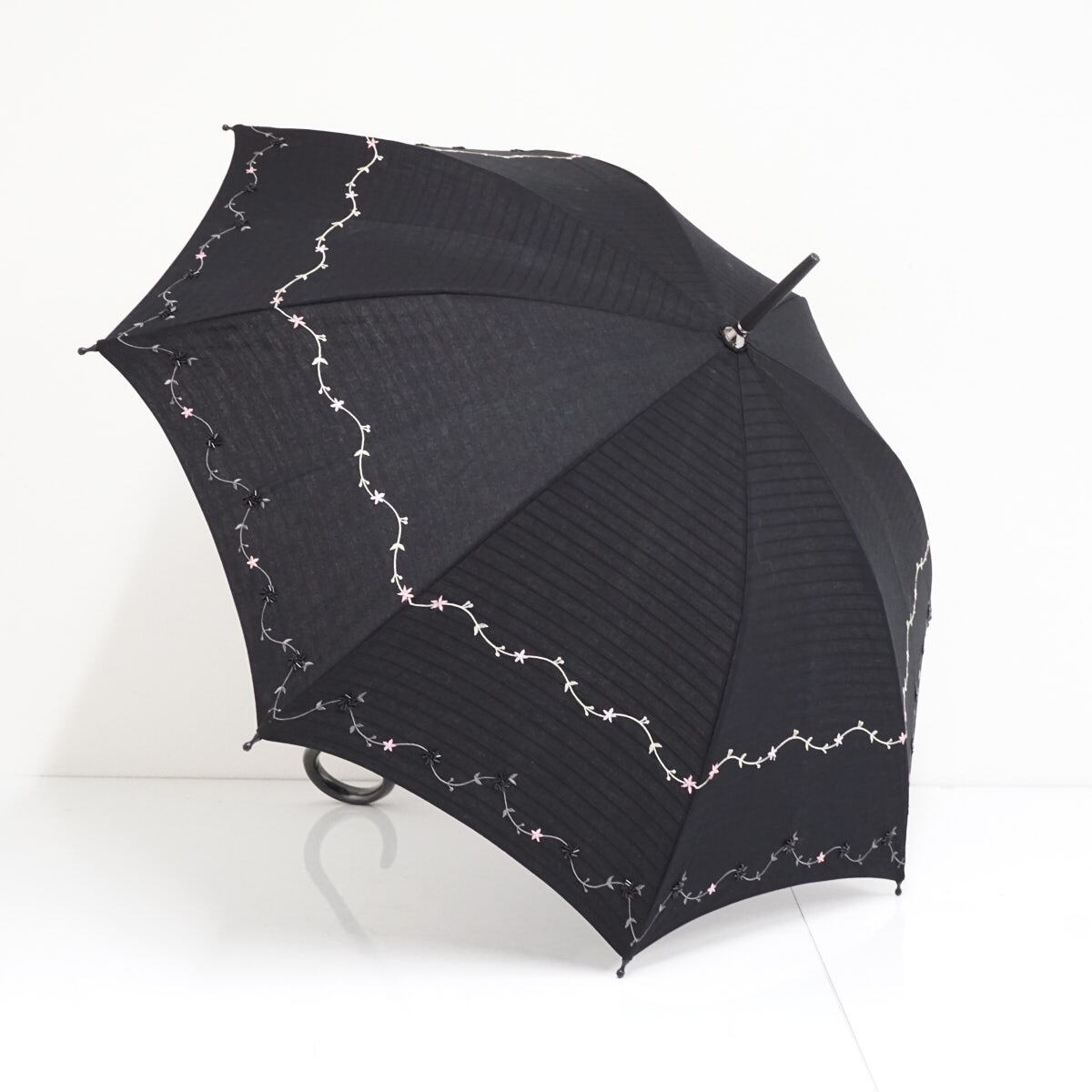 日傘 柴田(株) USED美品 フラワー 刺繍 ビーズ 木製手元 ブラック 日本製 上品 高級 紫外線対策 50cm S3133