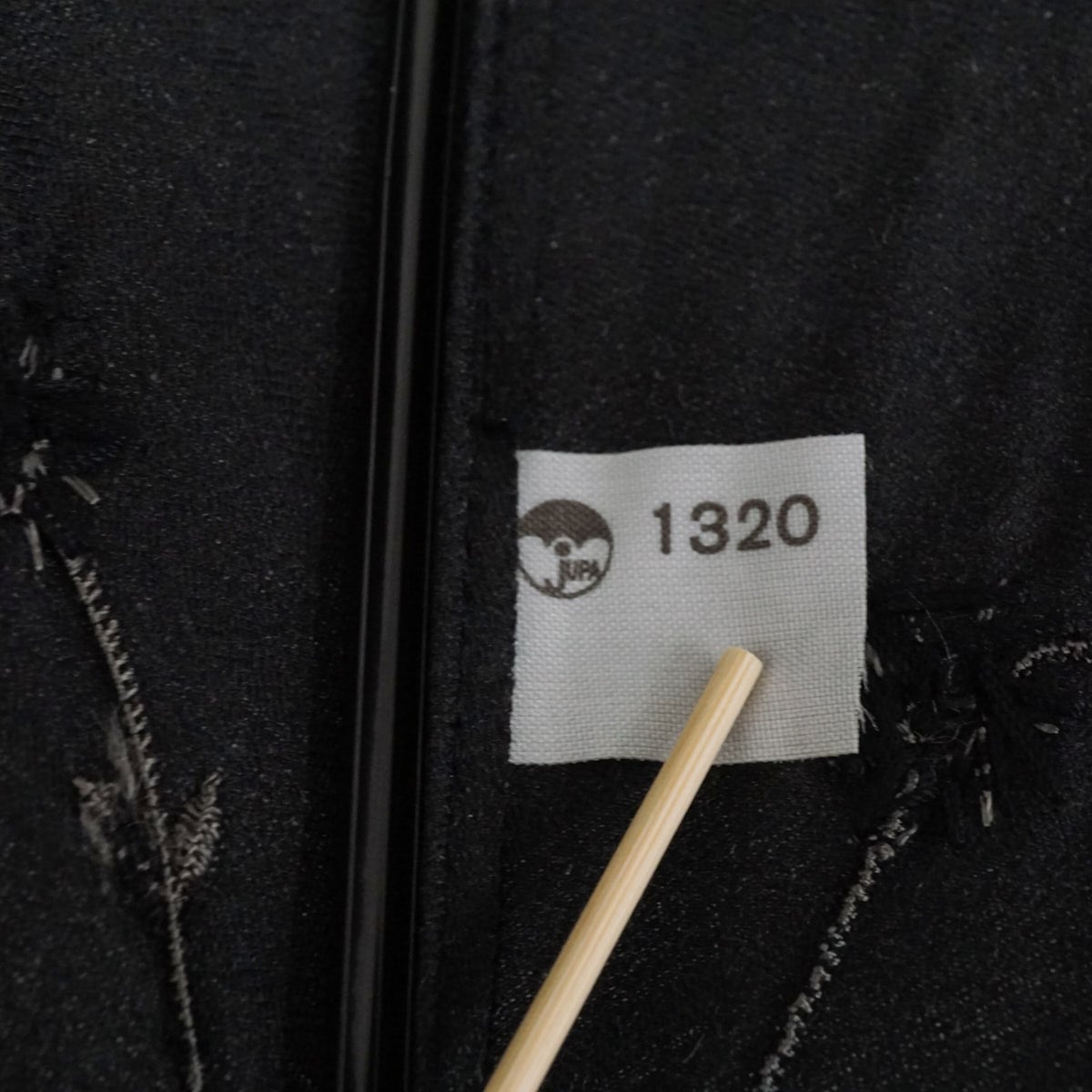 生地のカラーはブラックで、外周に刺繍で小花をデザインしています。