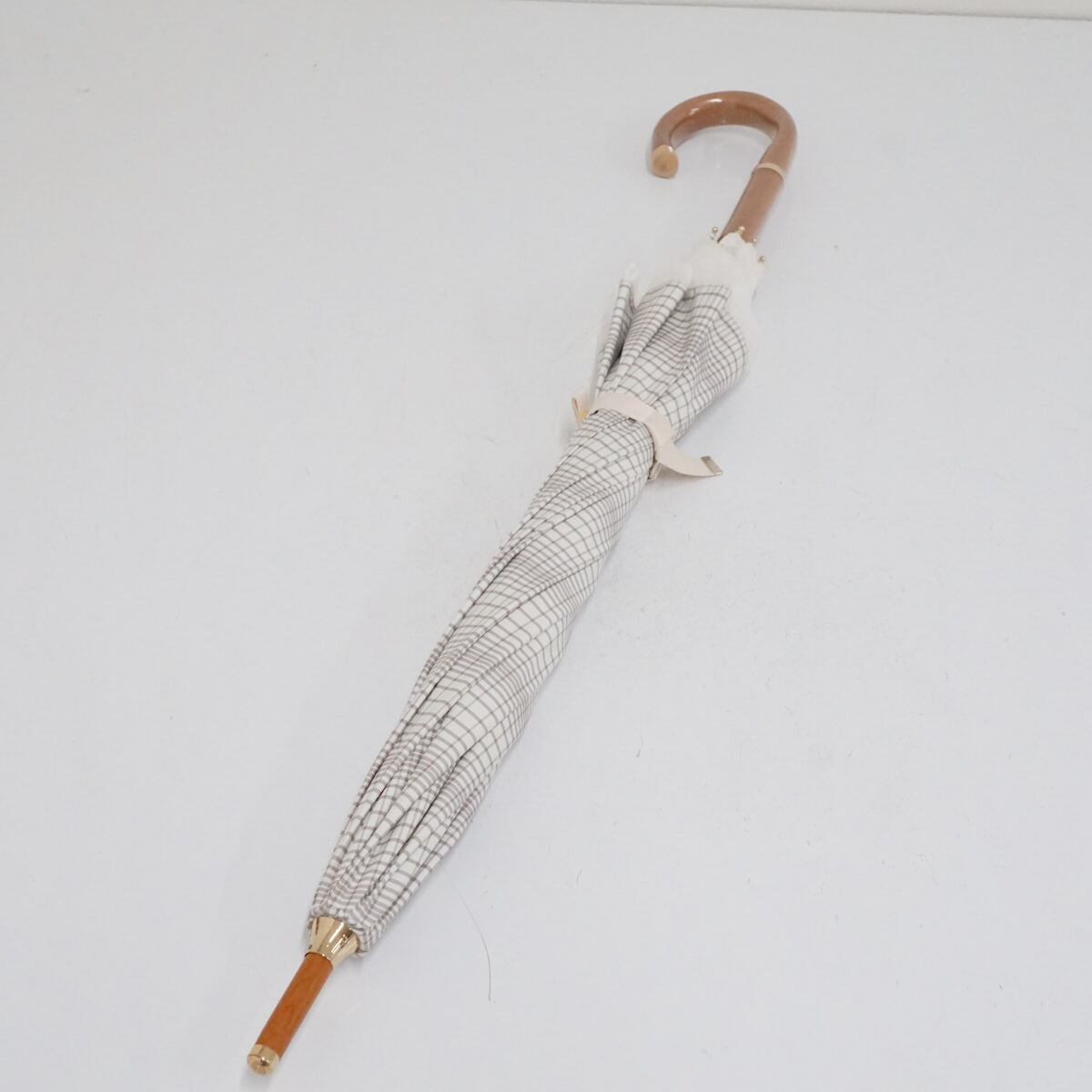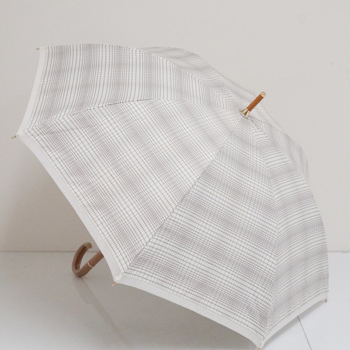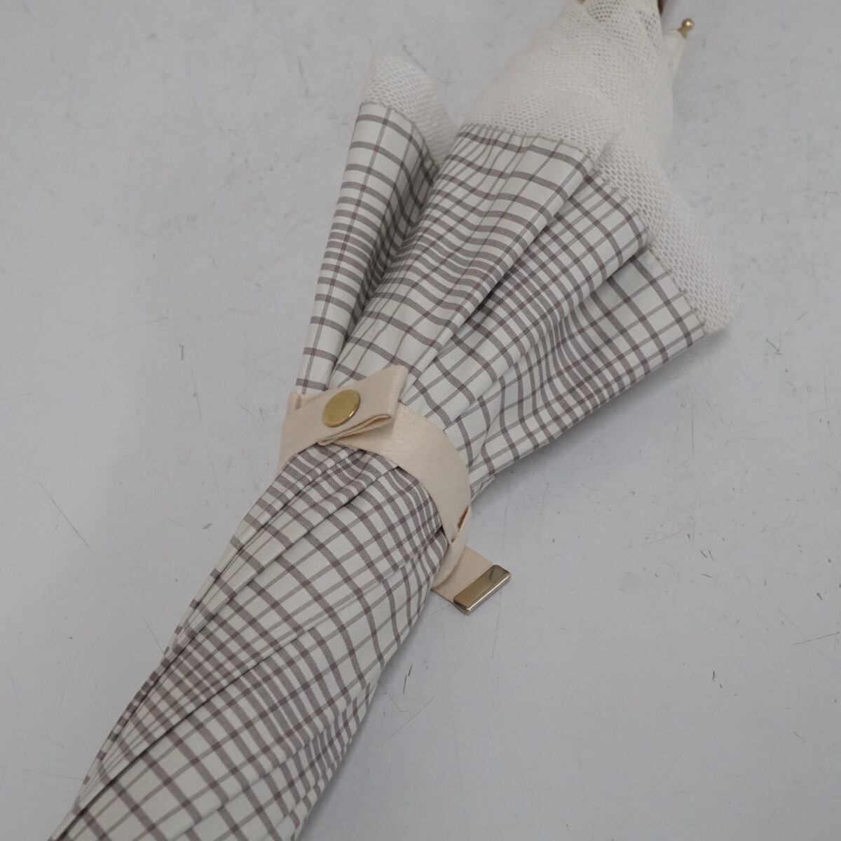 日傘 MOONBAT ムーンバット USED美品 ホワイト チェック 晴雨兼用 UV 紫外線対策 木製手元 グラス骨 50cm A3134