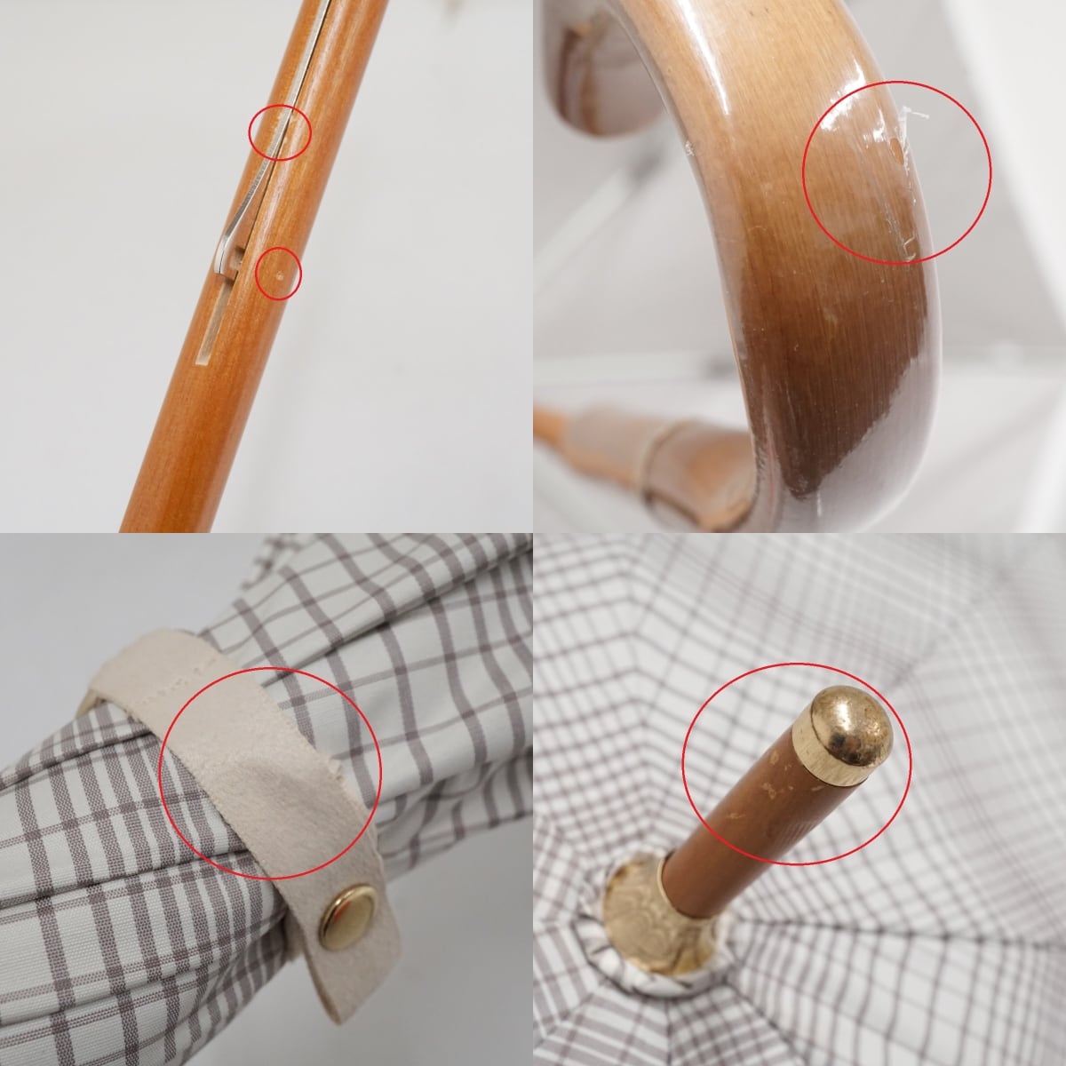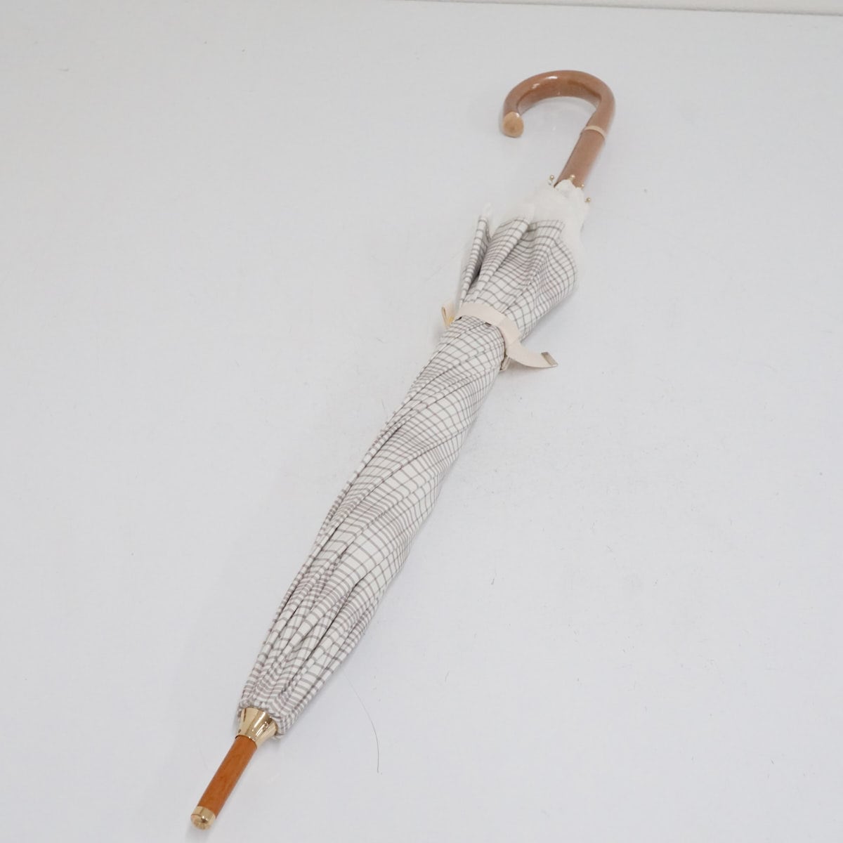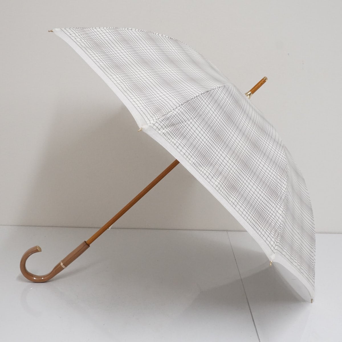 日傘 MOONBAT ムーンバット USED美品 ホワイト チェック 晴雨兼用 UV 紫外線対策 木製手元 グラス骨 50cm A3134