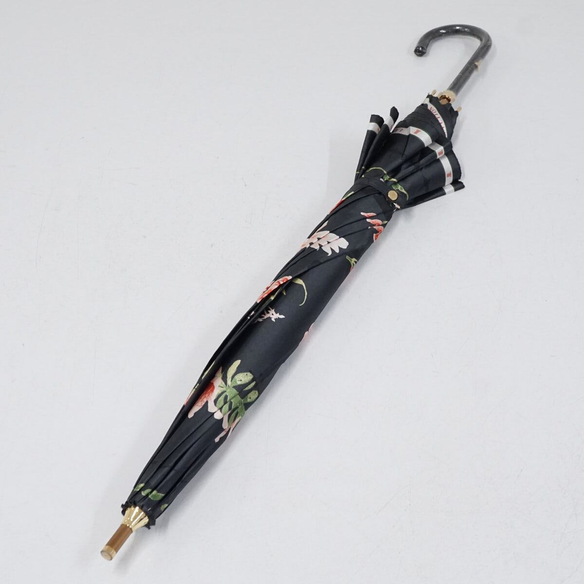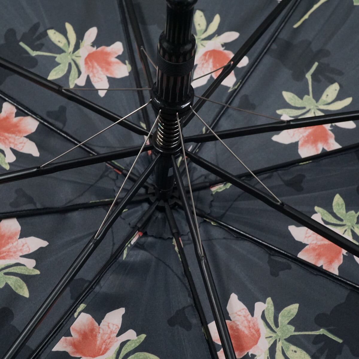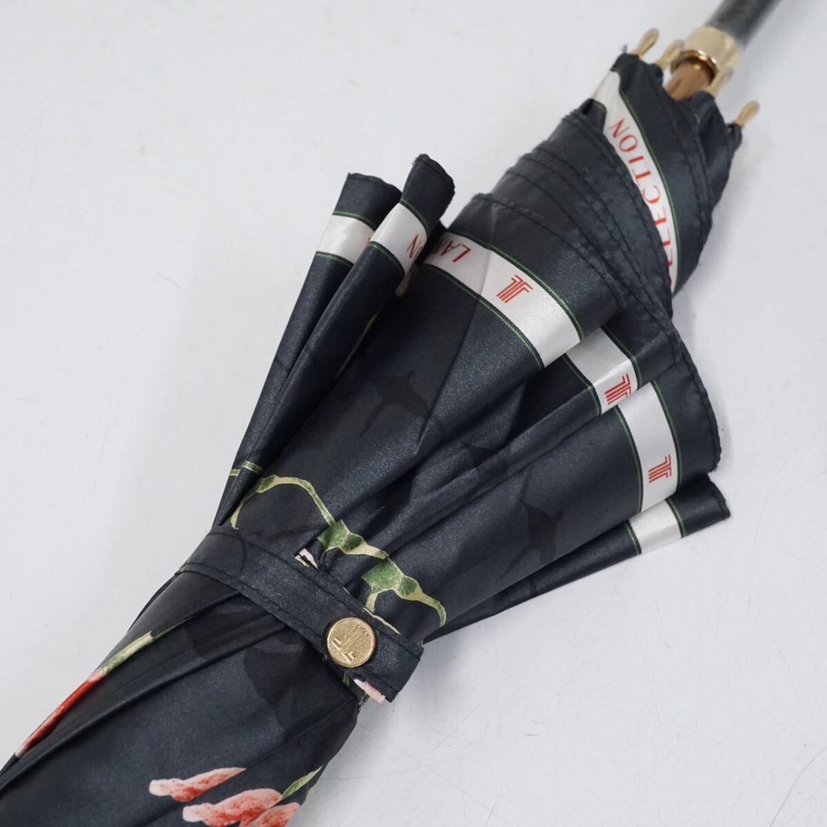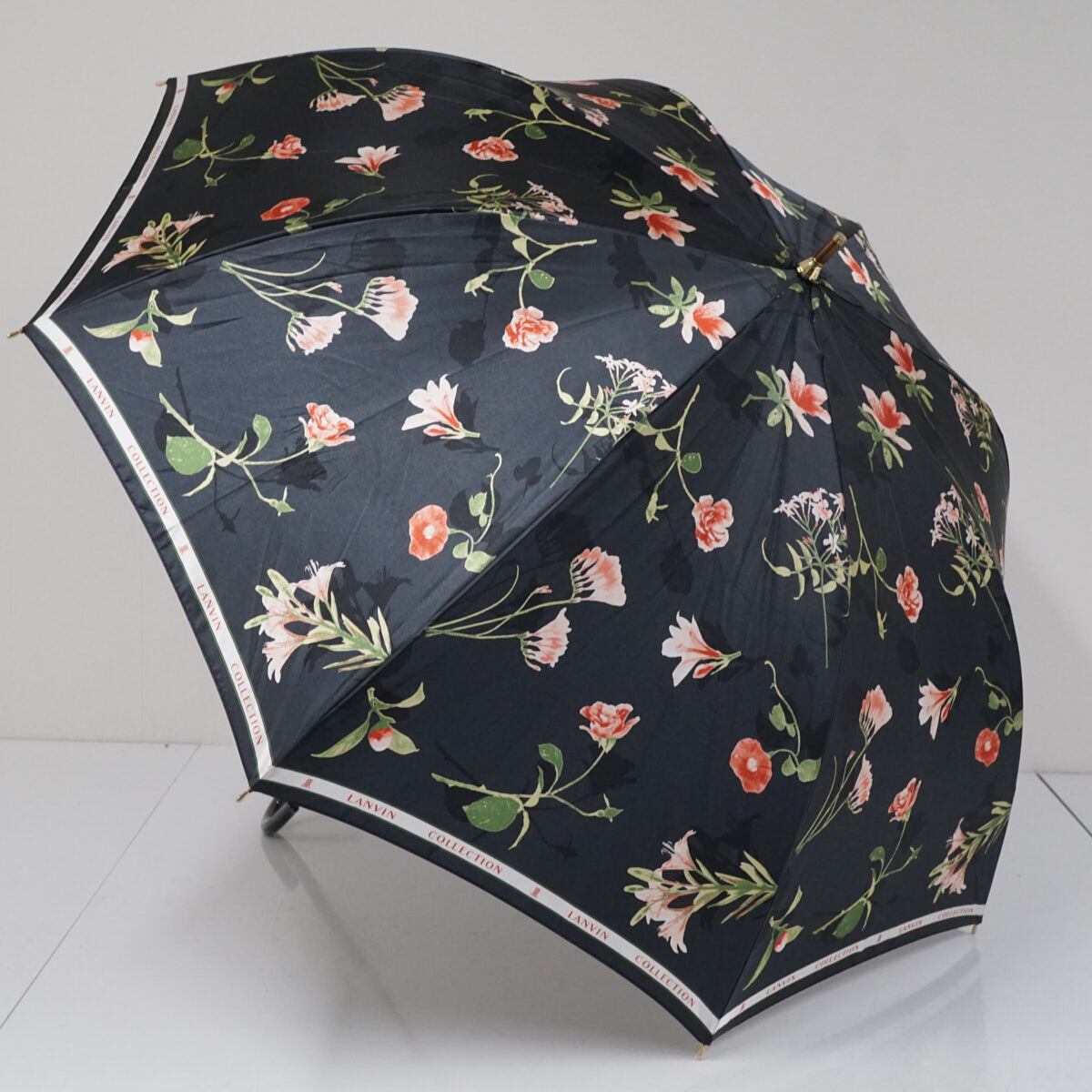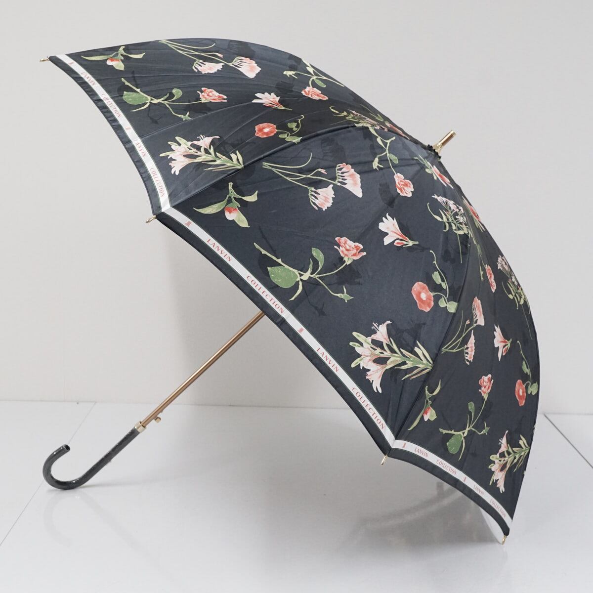 光沢のあるブラックの生地に、フラワーをデザインした「ランバンコレクション」の傘です。