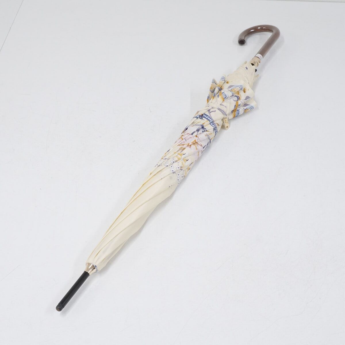 耐風傘 GHERARDINI ゲラルディーニ USED品 イエロー フラワー 日本製 木製手元 グラス骨 軽量 ジャンプ 60cm S3138