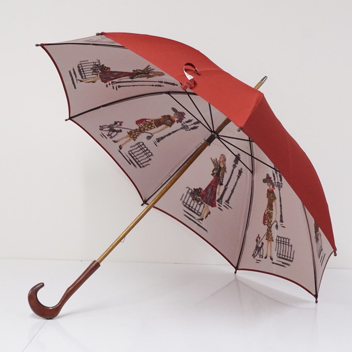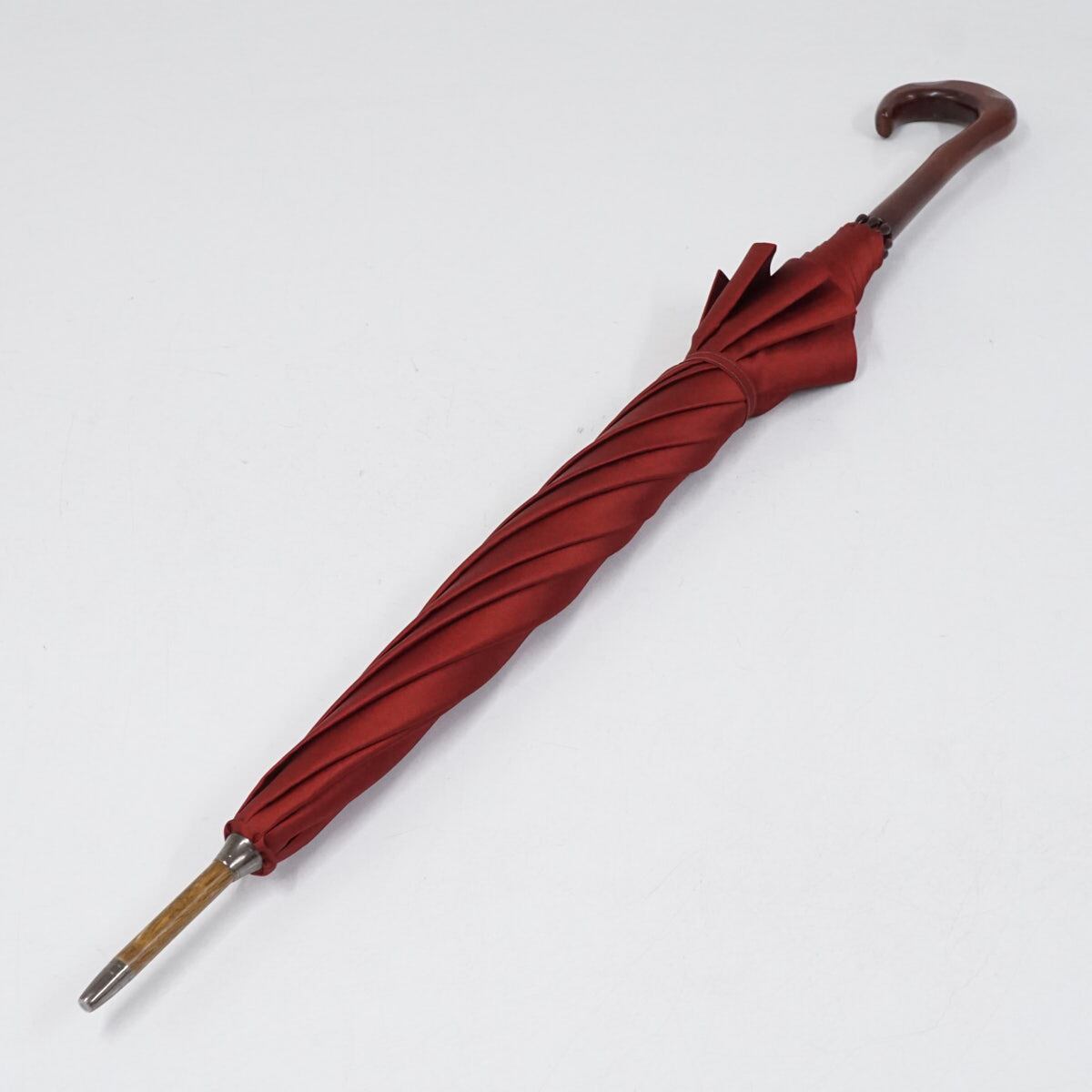 高級傘 モンブランヤマグチ USED品 レッド 赤 ほぐし織 アート 絵画 天然木 60cm S3148