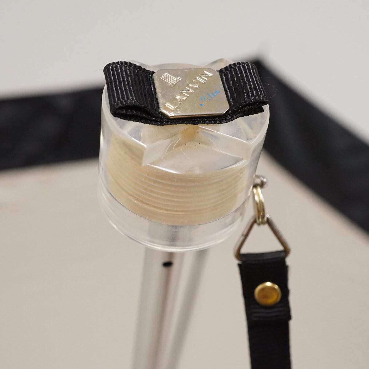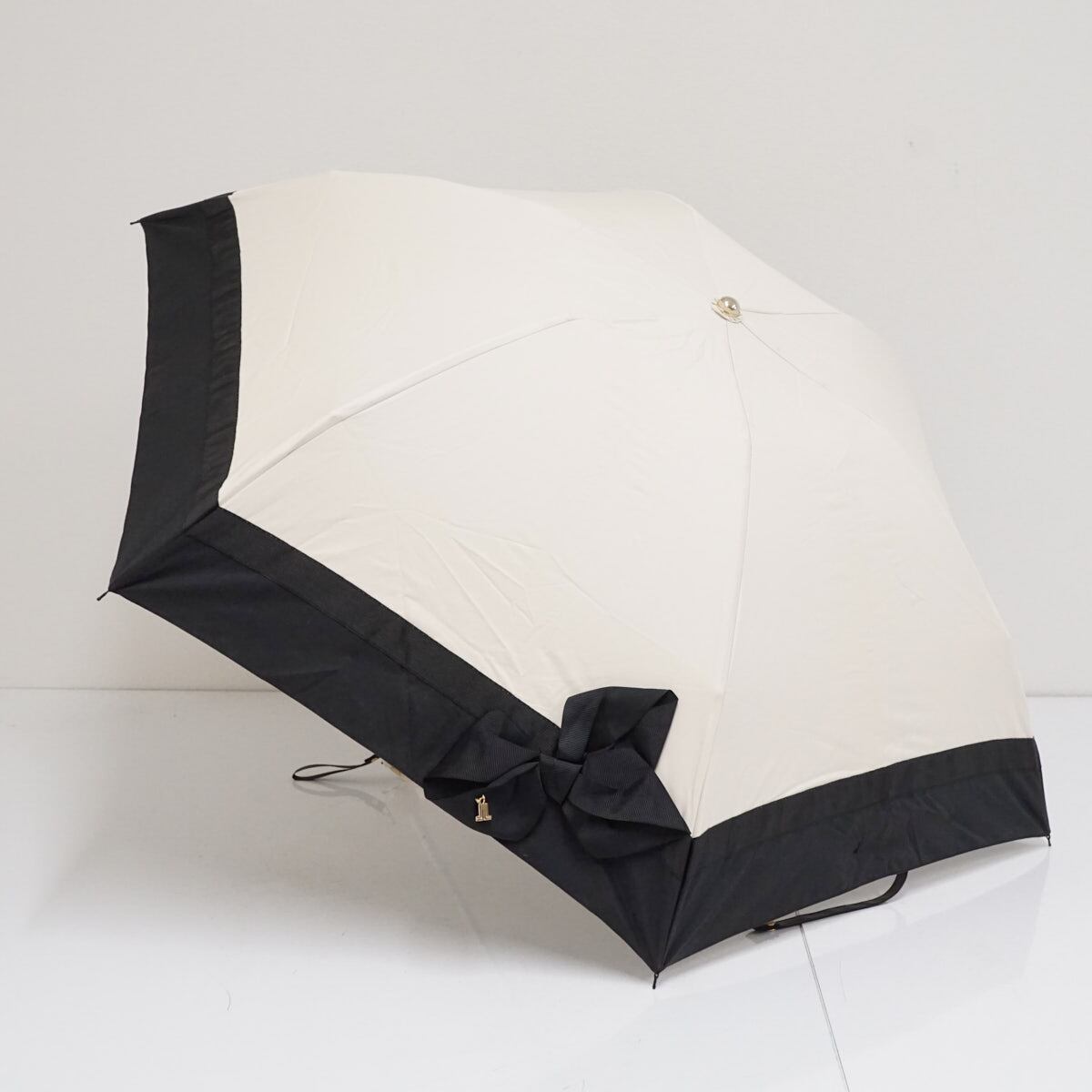 折りたたみ日傘 LANVIN en Bleu ランバンオンブルー USED美品 晴雨兼用 ビジューリボン ベージュ ブラック UV 遮光 48cm FS9334