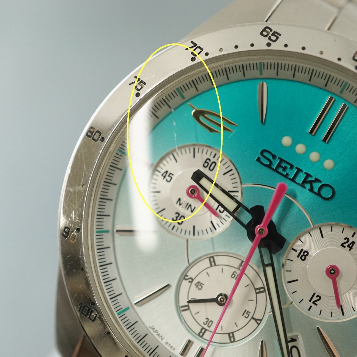 ※ケース、裏蓋、ベルトなど全体的に細かいスリキズがあります。(一部を画像にてご確認ください。)