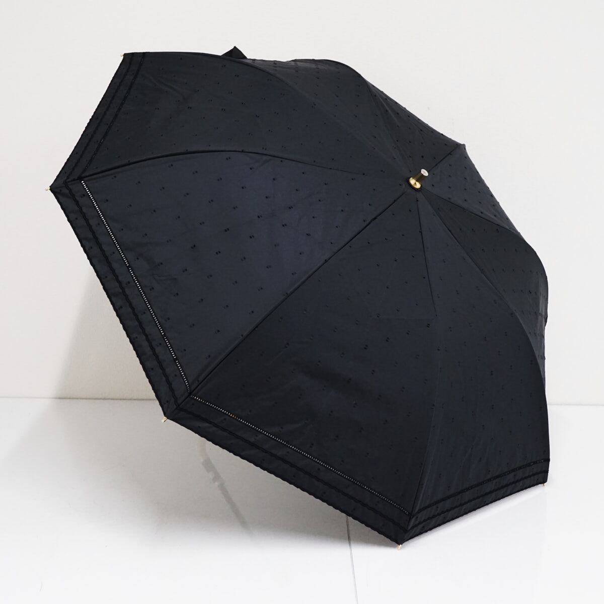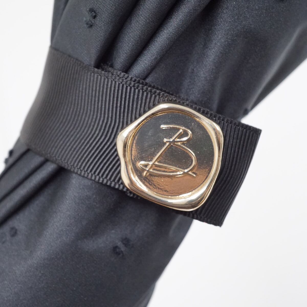 折りたたみ日傘 Beaurance ビューランス USED美品 晴雨兼用 UV 遮光 遮熱 ドット ブラック 籐手元 50cm FS9336
