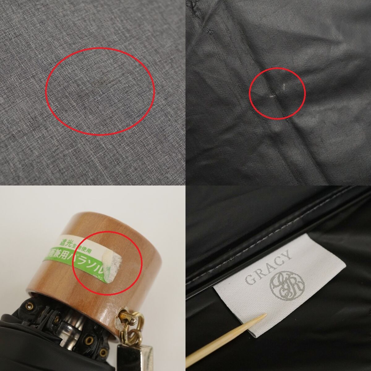 折りたたみ日傘 GRASY グレイシー USED美品 晴雨兼用 刺繍 リボン グレー UV 遮光 50cm FA9345