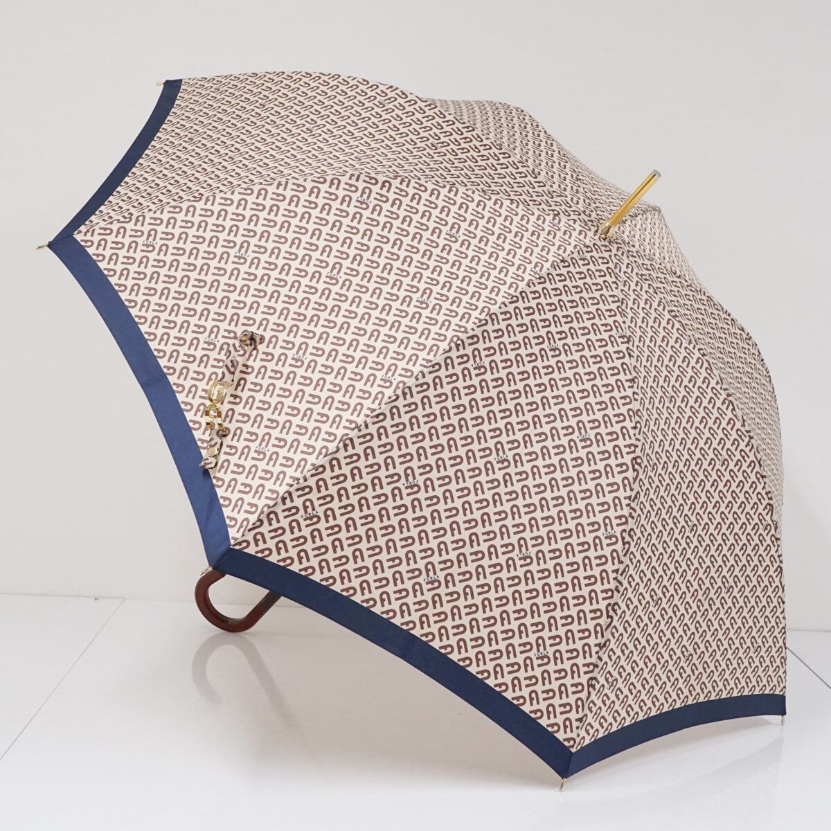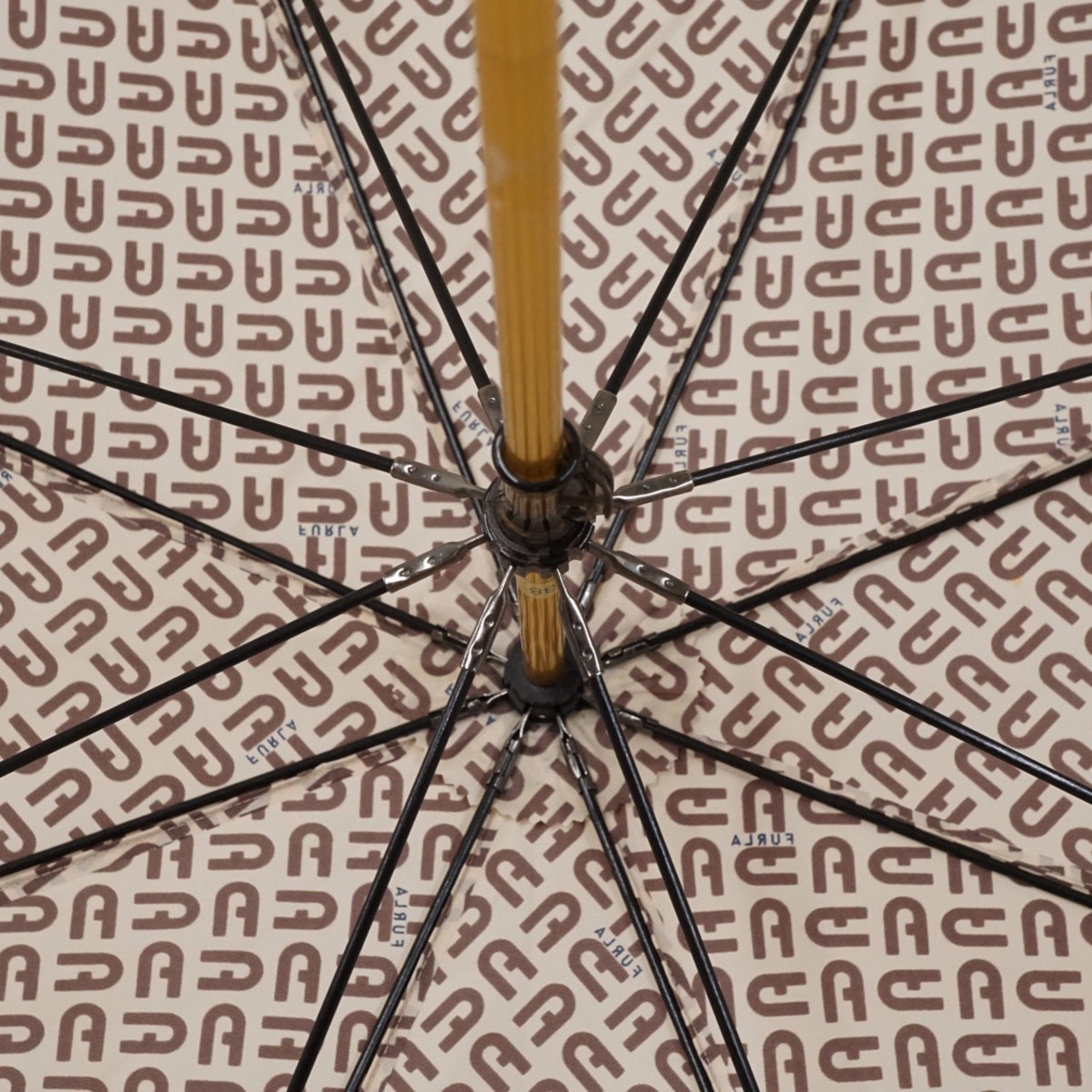 傘 FURLA フルラ USED美品 モノグラムロゴ ベージュ ブラウン ネイビー 60cm グラス骨 S3170