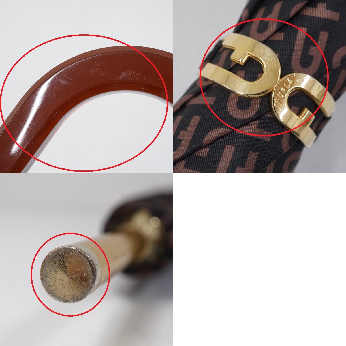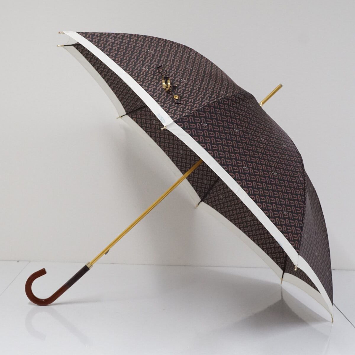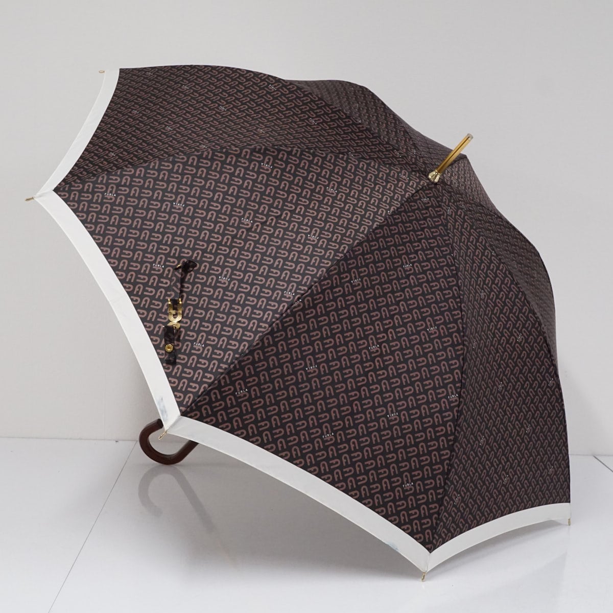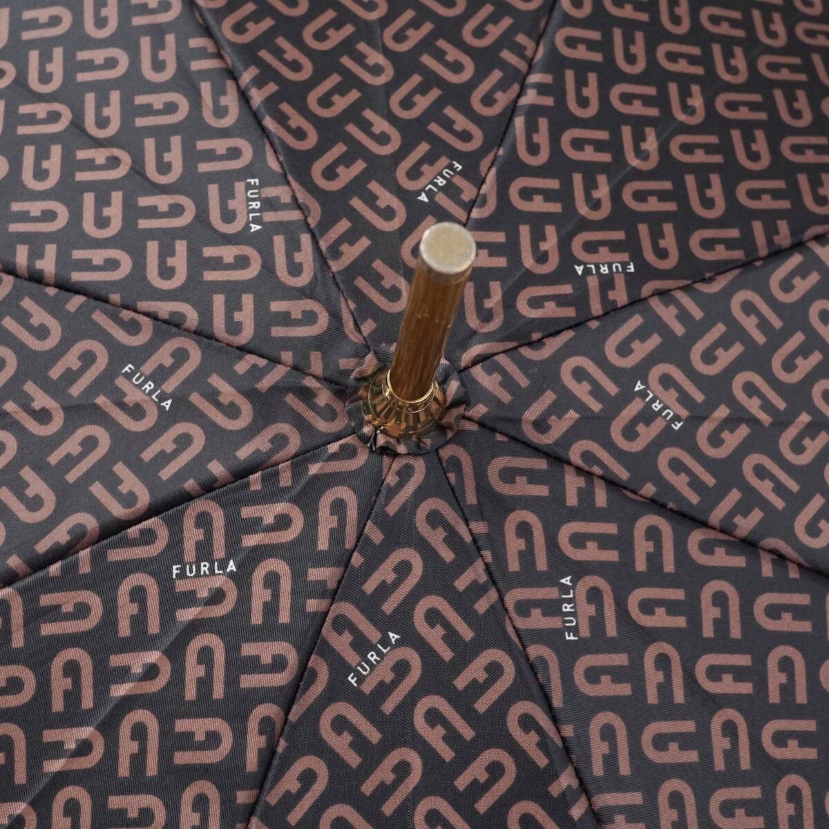 傘 FURLA フルラ USED品 モノグラム ロゴ ブラウン 60cm グラス骨 S3173