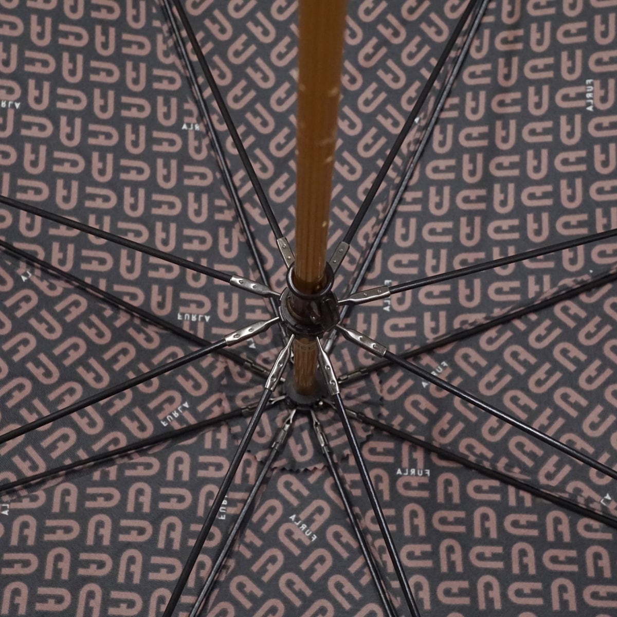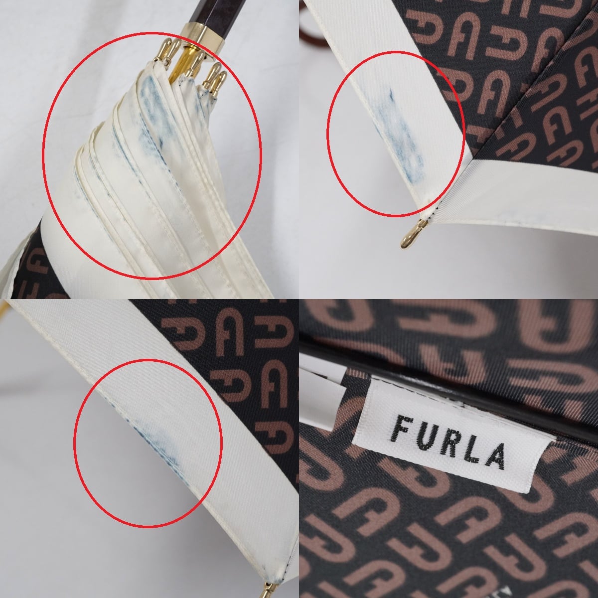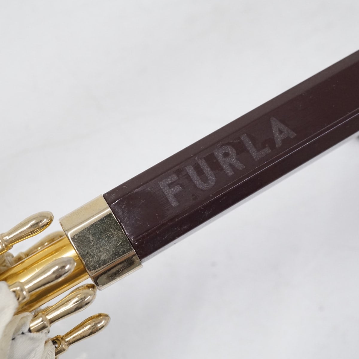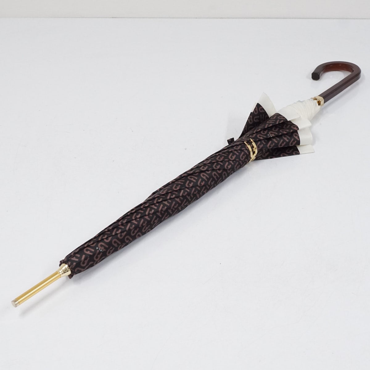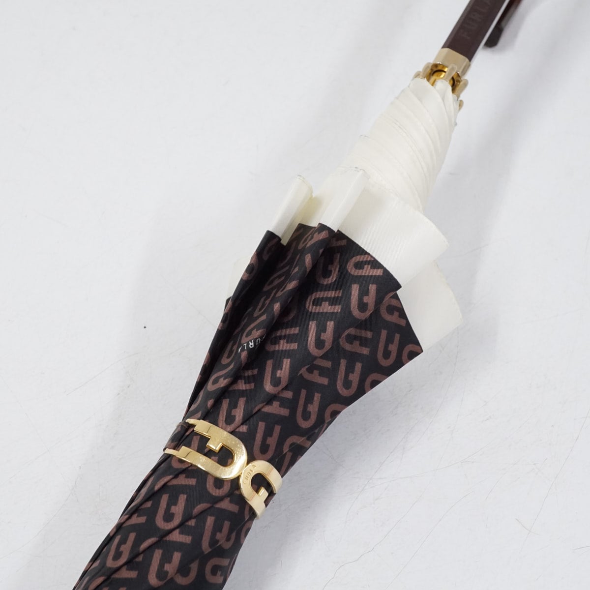 傘 FURLA フルラ USED品 モノグラム ロゴ ブラウン 60cm グラス骨 S3173