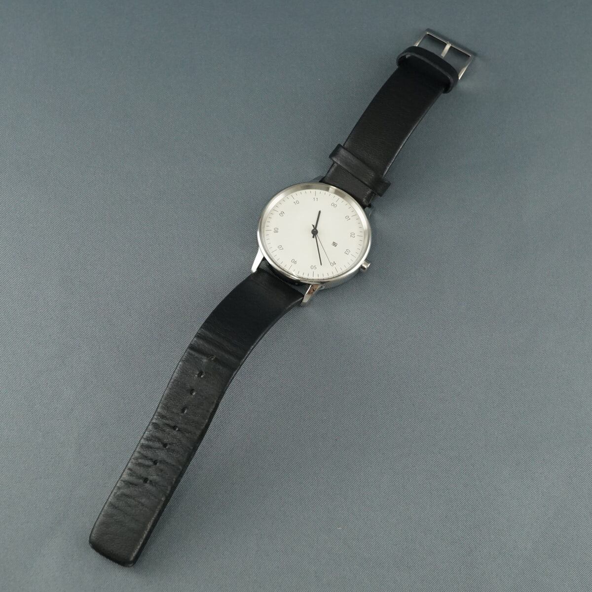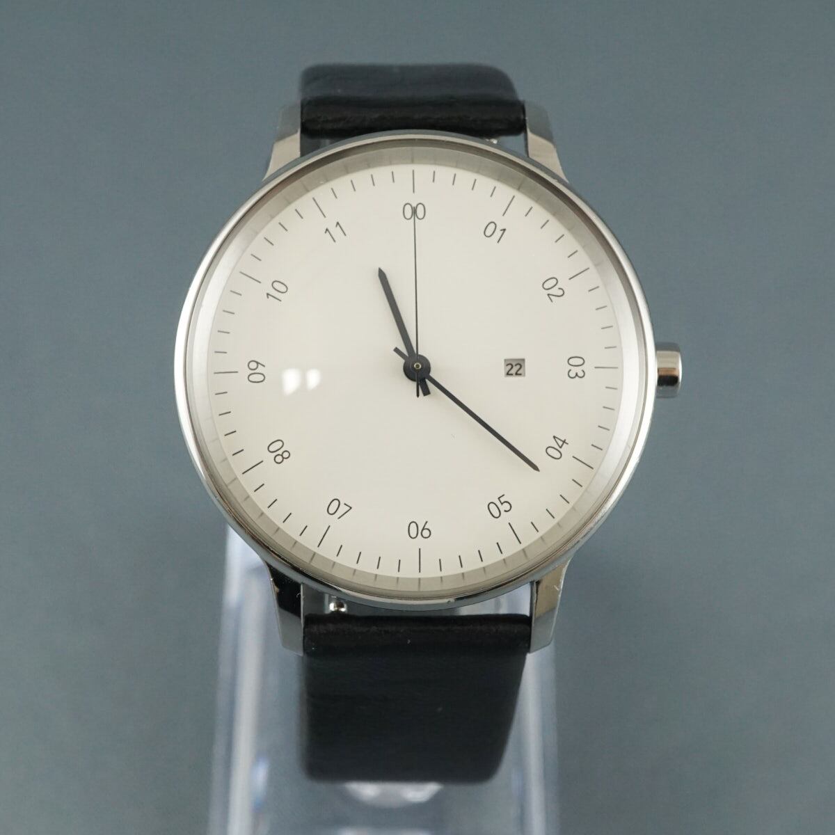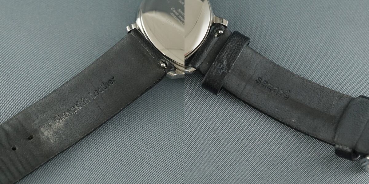 sazare サザレ 腕時計 USED美品 SK01 SS ホワイト シルバー ブラック レザー 01.01.00 完動品 中古 X7501