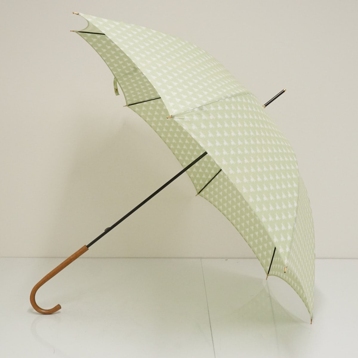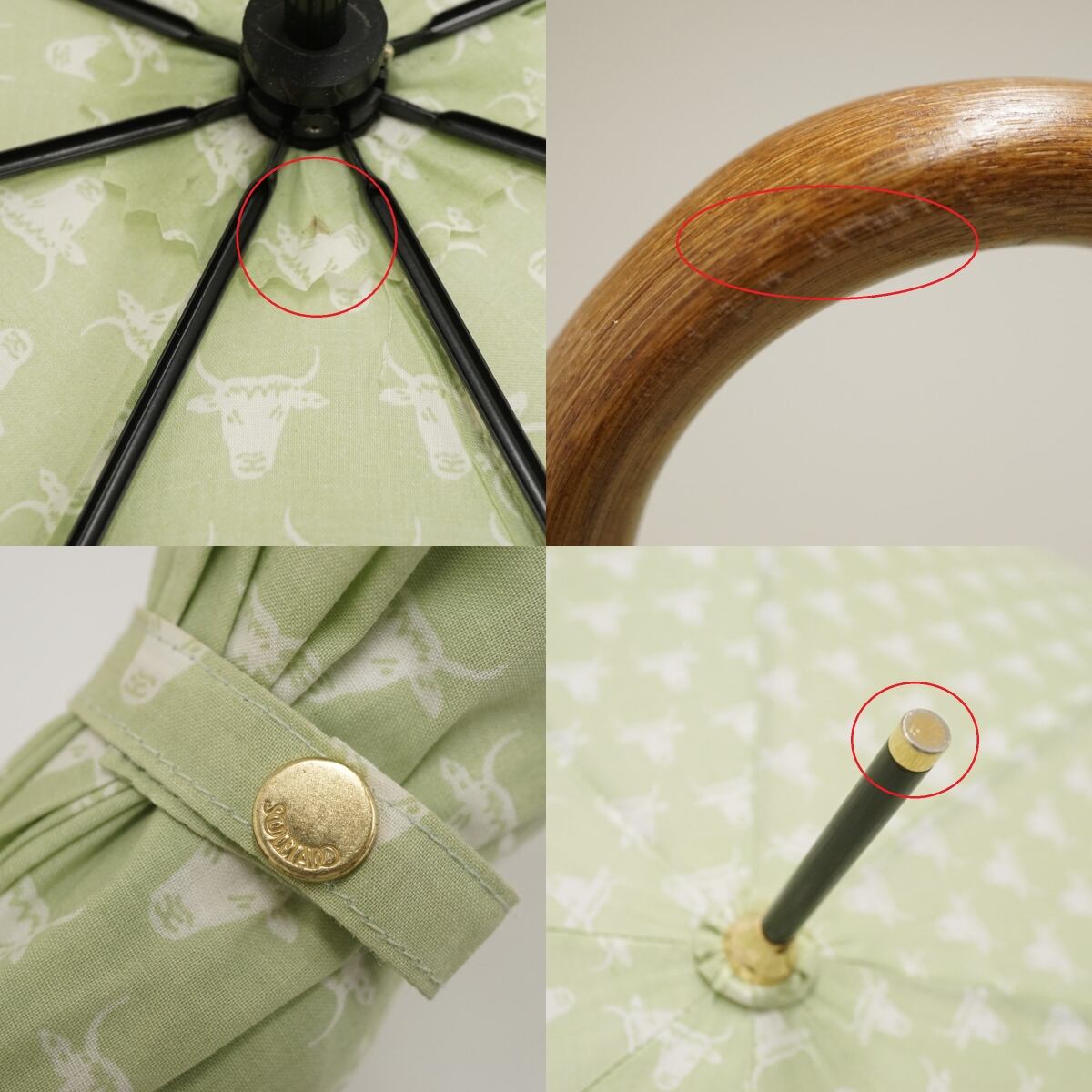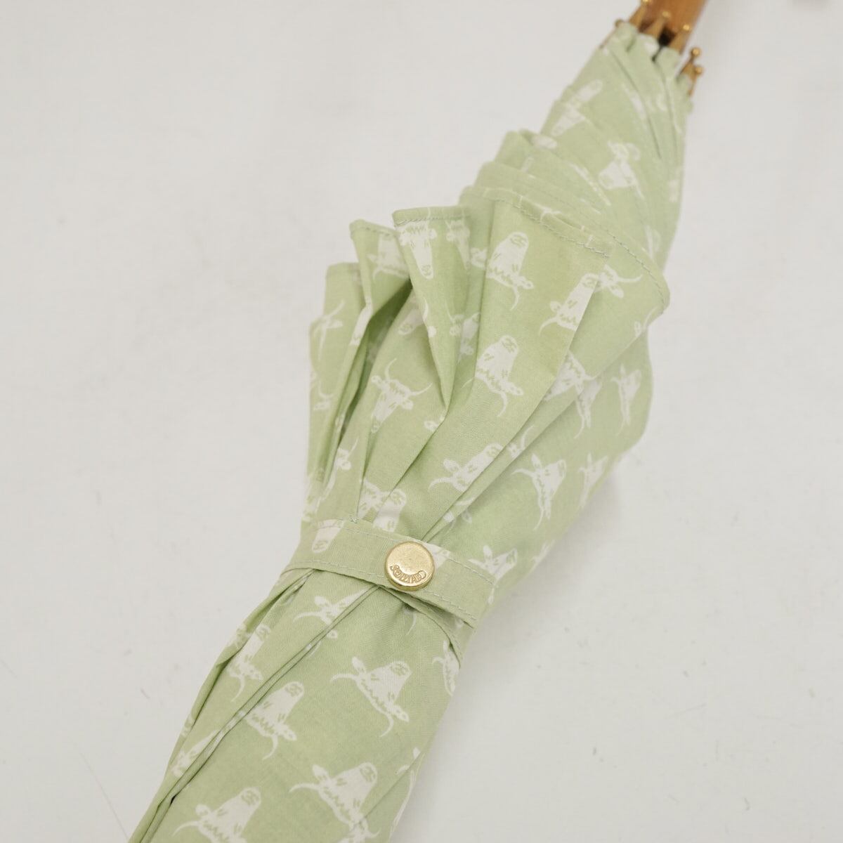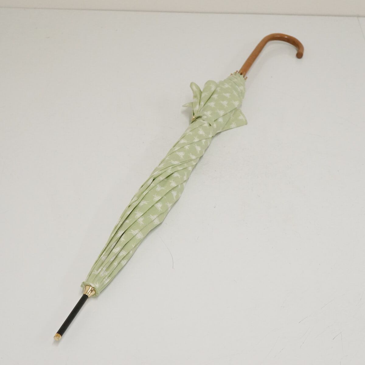晴雨兼用傘 SOULEIADO ソレイアード USED美品 ビンテージ風 クラシック フレンチシック 牛柄 ライトグリーン系 58cm S3177